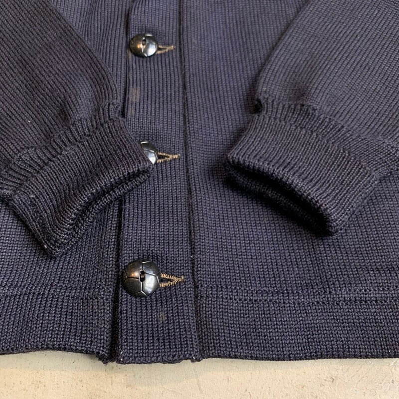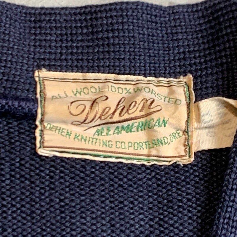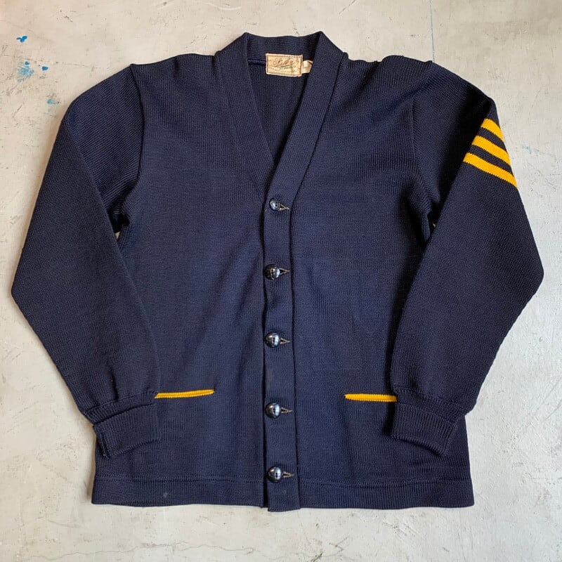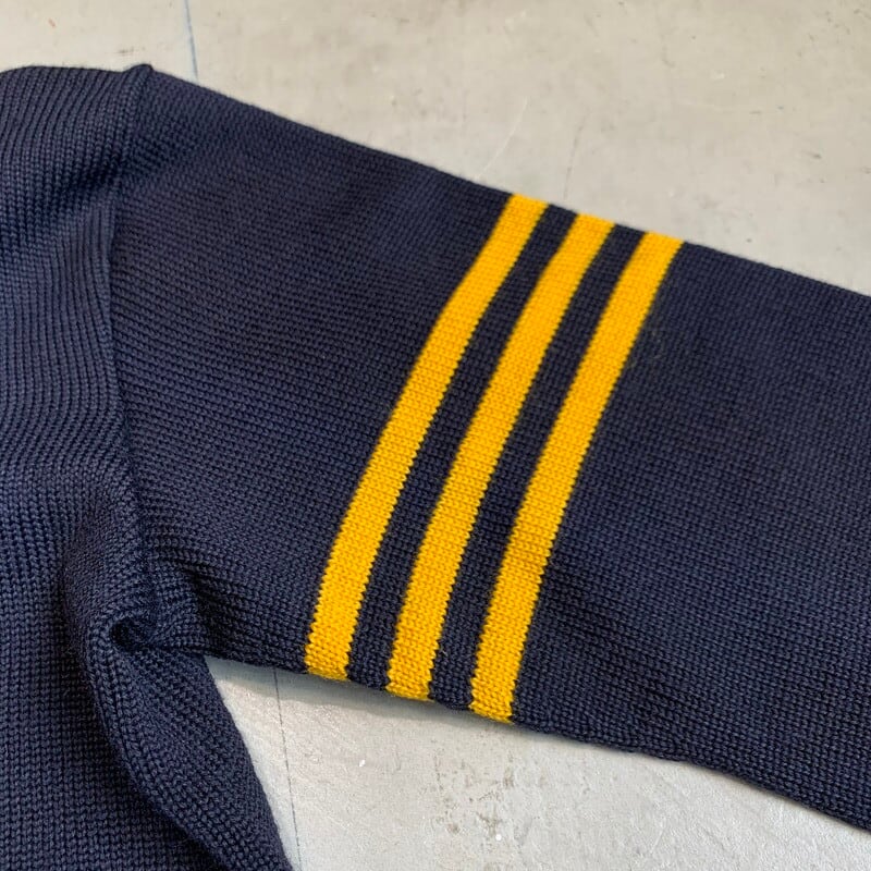 40's 50's Dehen ローゲージニットカーディガン ネイビー イエロー スクール カレッジ レタード プレーン 美品 38位 希少 ヴィンテージ BA-1208 RM1577H