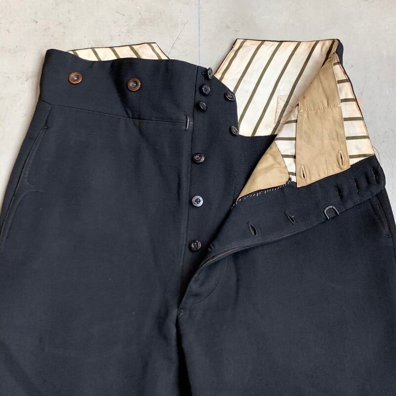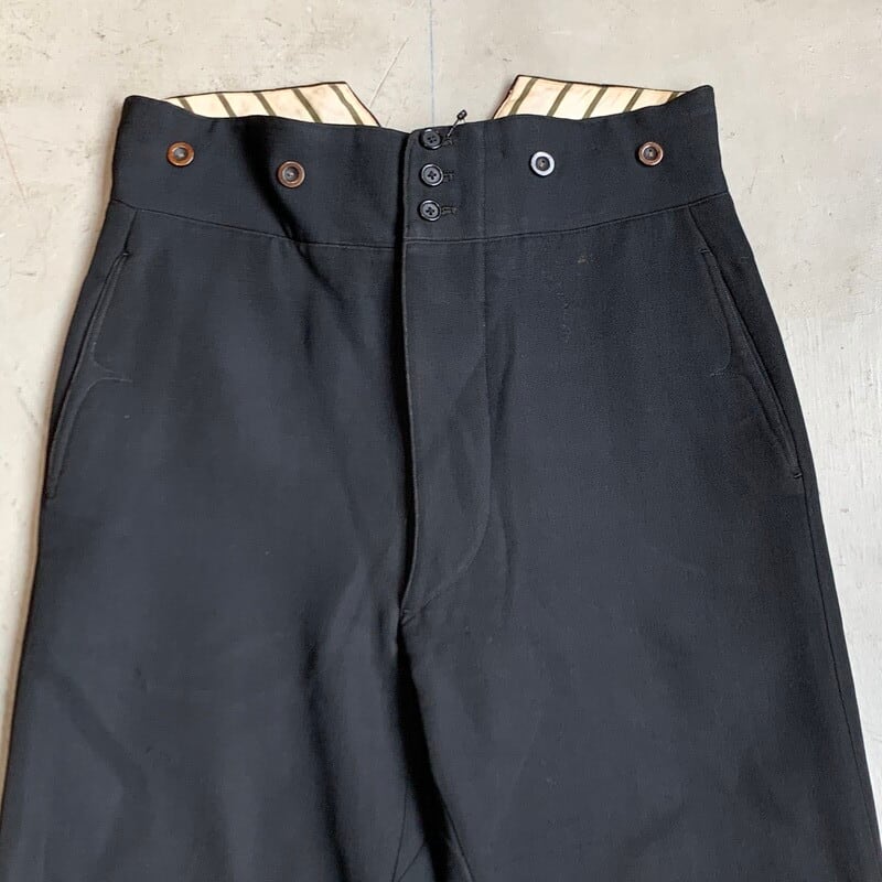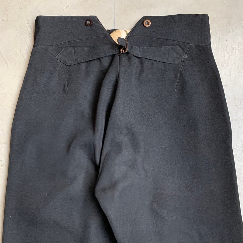 20's~ UNKNOWN ウールメリヤスドレスパンツ 針刺しシンチバック アンティーク ブラック ハイウェスト ユーロ フランス クロッチガゼット W31位 美品 希少 ヴィンテージ BA-1213 RM1582H