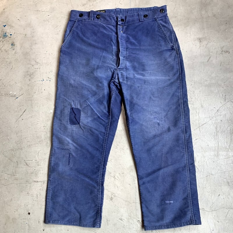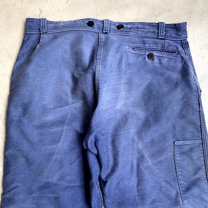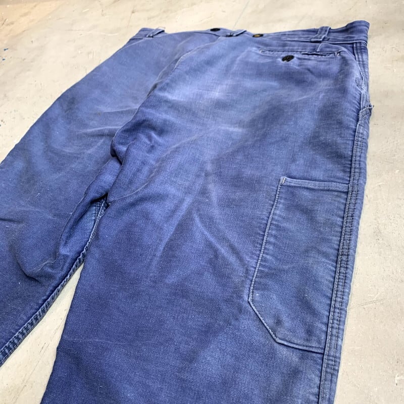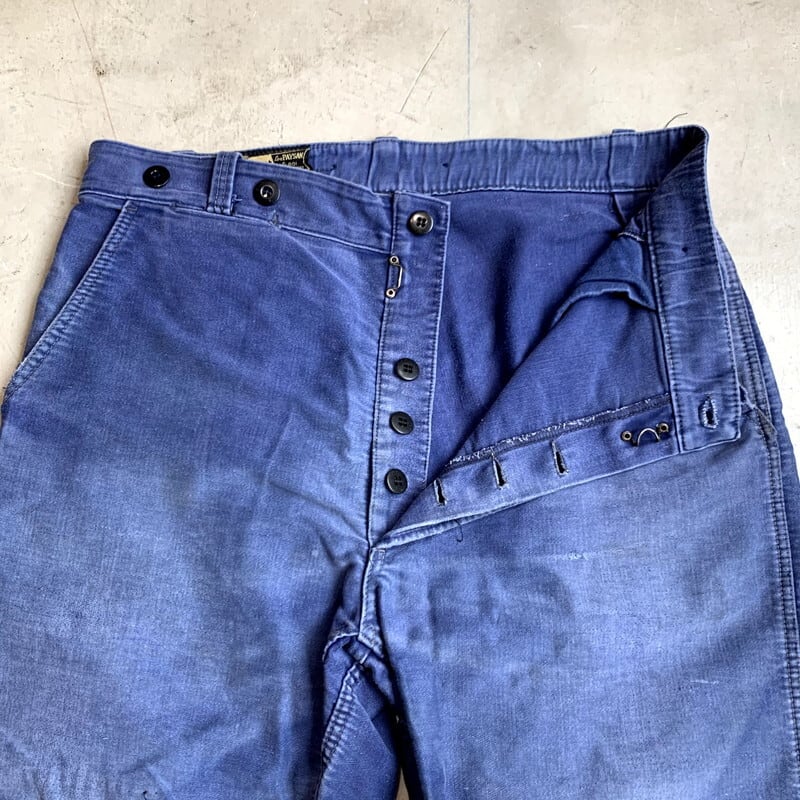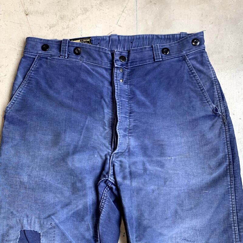40's 50's Jeanot Lou PAYSAN フレンチモールスキンワークパンツ インクブルー フェード リペア ユーロワーク W36 希少 ヴィンテージ BA-1221 RM1590H