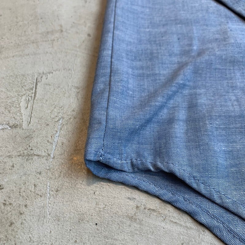 70年代頃のBIG MACシャンブレーシャツです。アメリカの3大ストアのJC Pennyが手掛けるプライベートブランドです。刺繍など入らないプレーンタイプで、襟芯は無く肩周りやサイドは内縫いです。左の胸ポケットのフラップにはペン刺し口がございます。襟もとにやや薄汚れがございます。15-15 1/2表記ですが、身幅もゆったりしているのでL相当です。ダメージな無く状態は良好です。シンプルですが、シャンブレーシャツは使い勝手の良いアイテムですので、サイズが合う方は是非いかがでしょうか。
