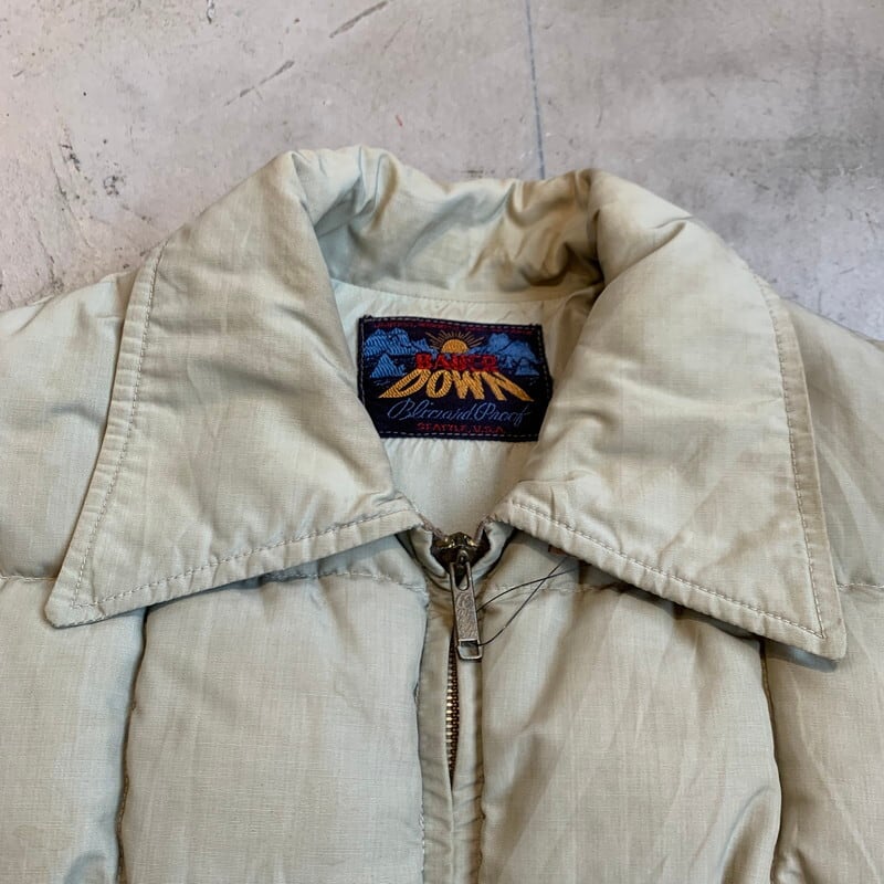 50's Eddie Bauer BAUER DOWN キルティングダウンジャケット 日の出タグ 初期 ®無し ベージュ COATS&CLARK ボア袖 Mサイズ位 USA製 希少 BA-1226 RM1595H