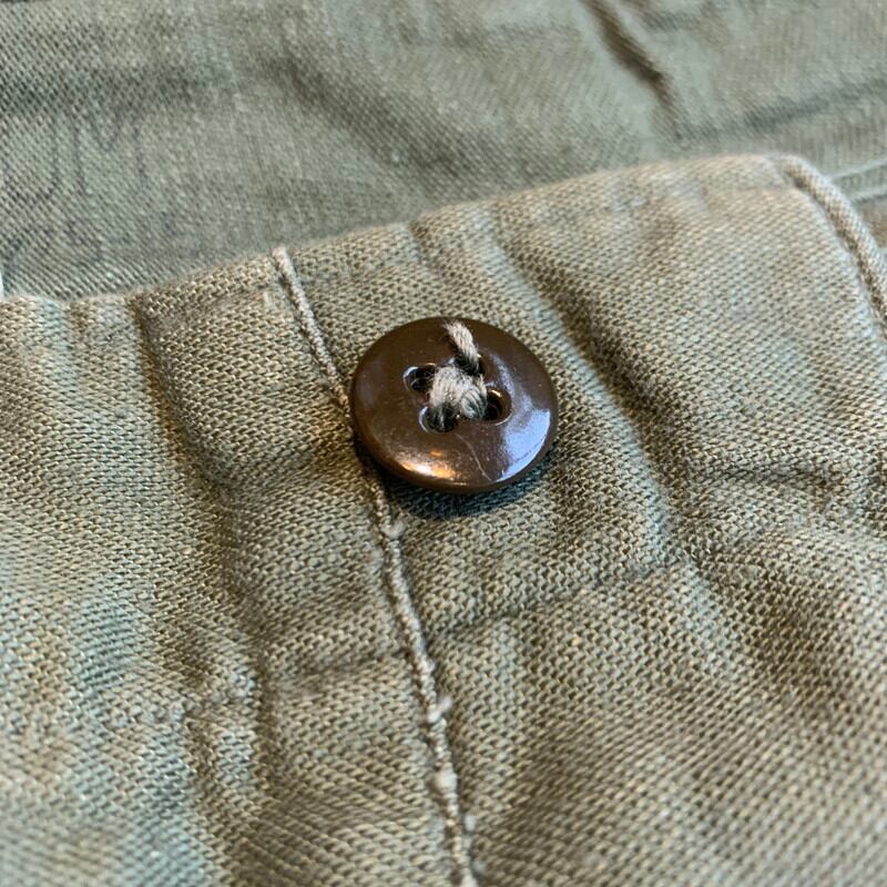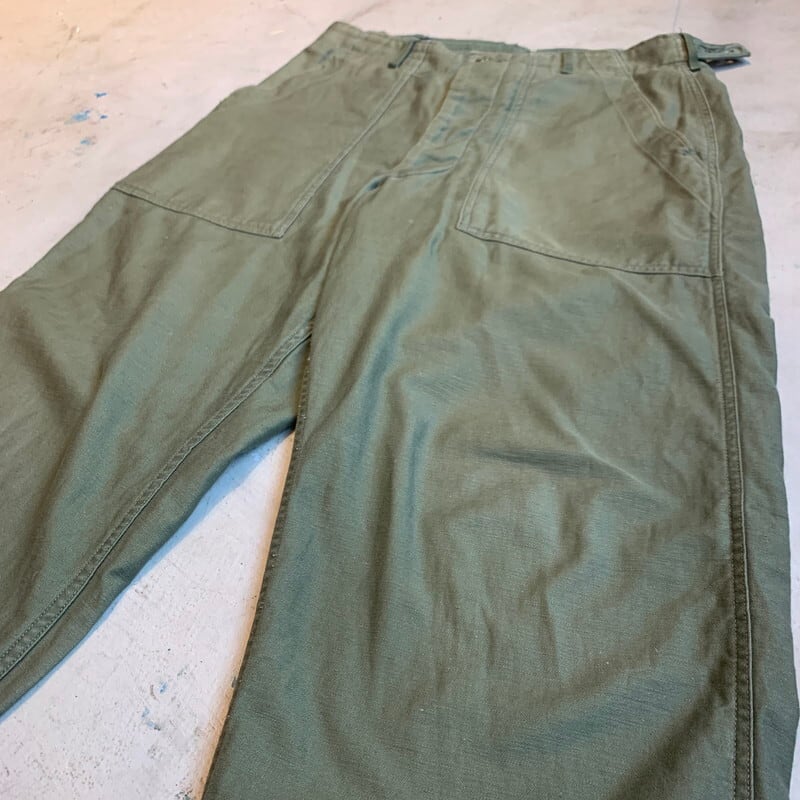 50年代後期頃のU.S.ARMYベイカーパンツです。ミルスペックは内タグ以前のスタンプタイプですが、文字がかすれている為詳細は不明。60年代半ばには廃止されるサイドの調整用アジャストボタンが付きます。ボタンもオリーブではなくこげ茶色のタイプです。多少の使用感はございますが、グッドコンディションです。生地はしっかりしていてダメージは特にございません。サイズはW32ですのでゴールデンサイズです。サイドのアジャスターボタンが付くタイプも見つけにくくなってきていますので、是非この機会にいかがでしょうか。
