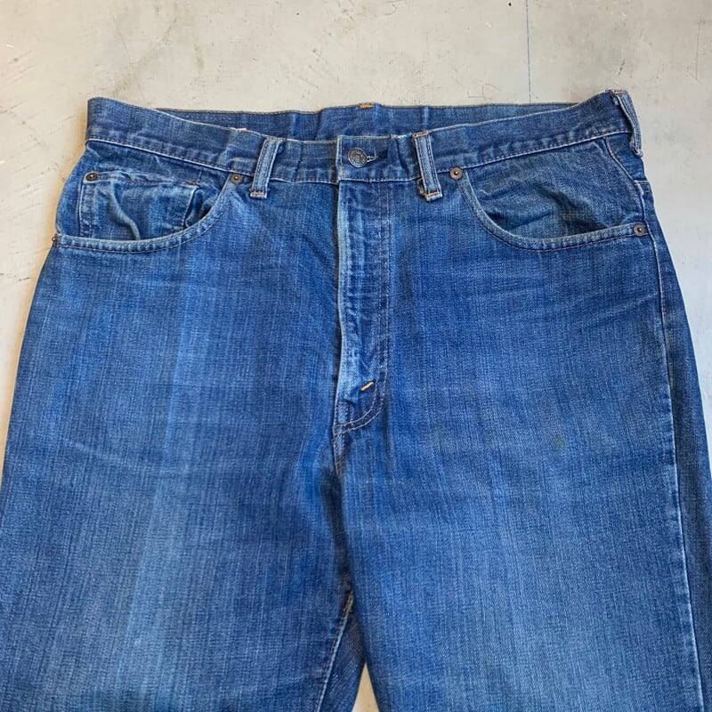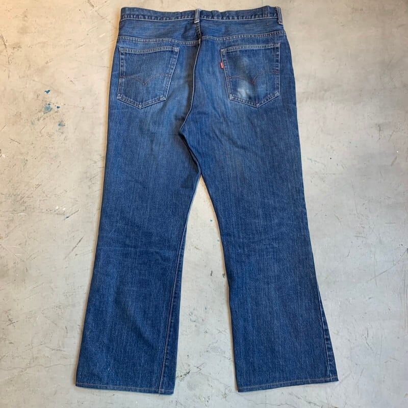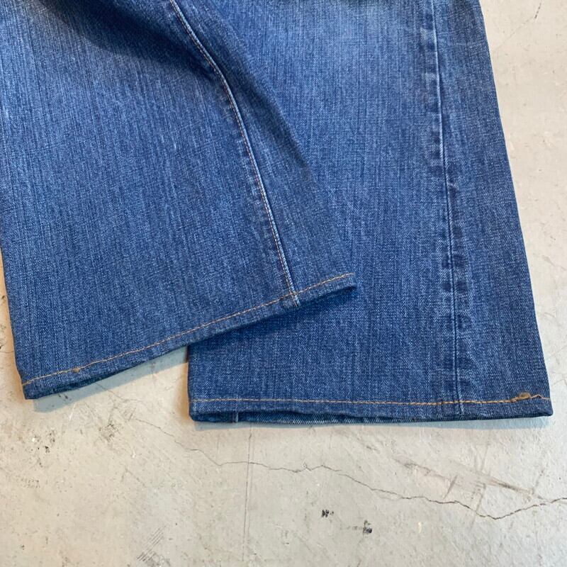 1970年代頃のLevi's517ブーツカットデニムです。トップボタン裏刻印2、42TALON、ウォッチポケット裏チェーン、バックポケット裏シングル、縮率3%の66前期モデルです。しっかりと縦落ちした66前期らしい色落ちです。股のステッチが一部飛んでいますがダメージやリペアはございません。フロントに薄いシミが少し見られます。濃淡もついた色落ちなので、これから穿きこめば経年変化も楽しめる1本だと思います。サイズはW36位。ややゆったりとした大きさですが、サイズでお探しだった方は是非いかがでしょうか?