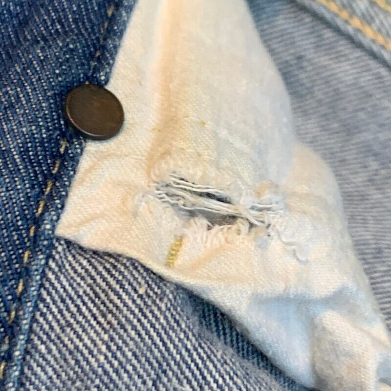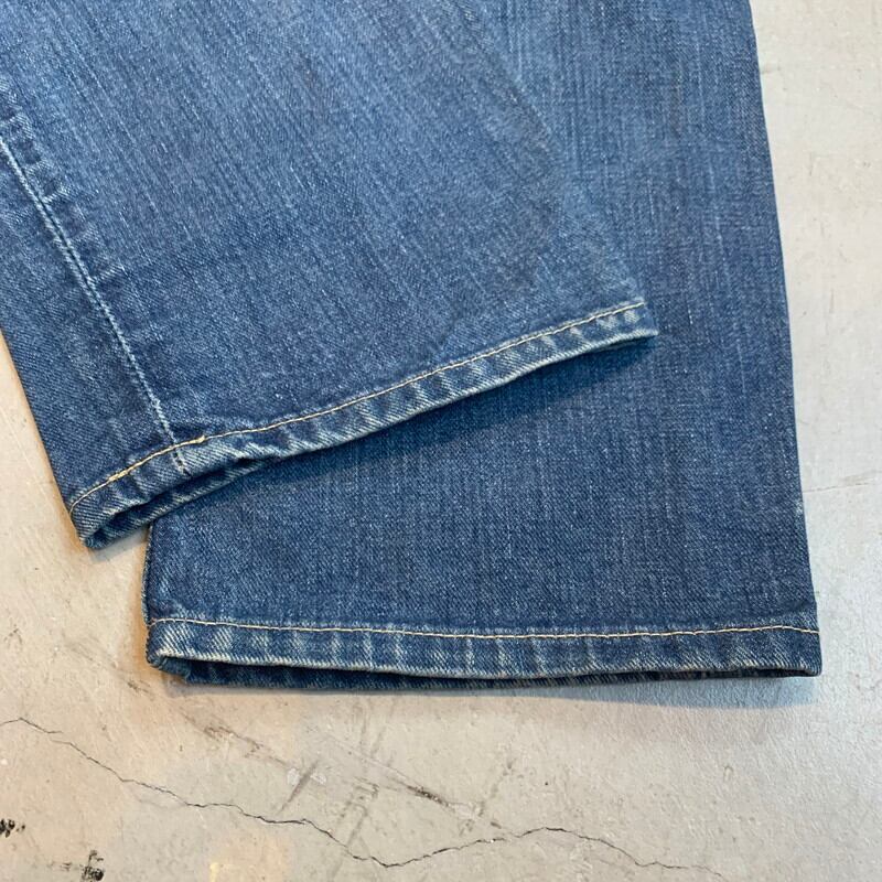 60s~70s頃のLee 101Z RIDERSデニムパンツです。サイド黒タグでR、MR表記が入りサイズ表記がタイプで、101Zサイド黒タグの後期モデルです。フロントボタンはLee RIDERS、TALONのセミオートマチックジッパーが採用されています。バックポケット内側に当て布とユニオンチケットがございます。ピスネームにも®MRが付きます。色残りは4~5割ほどで、うっすらとフロントにヒゲが入ります。サイドは脇割り仕様です。ステッチ飛びや使用感はございますが、特筆するダメージはございません。ウエストは表記通りのW30インチですので、女性にもお勧めしたいサイズ感です。