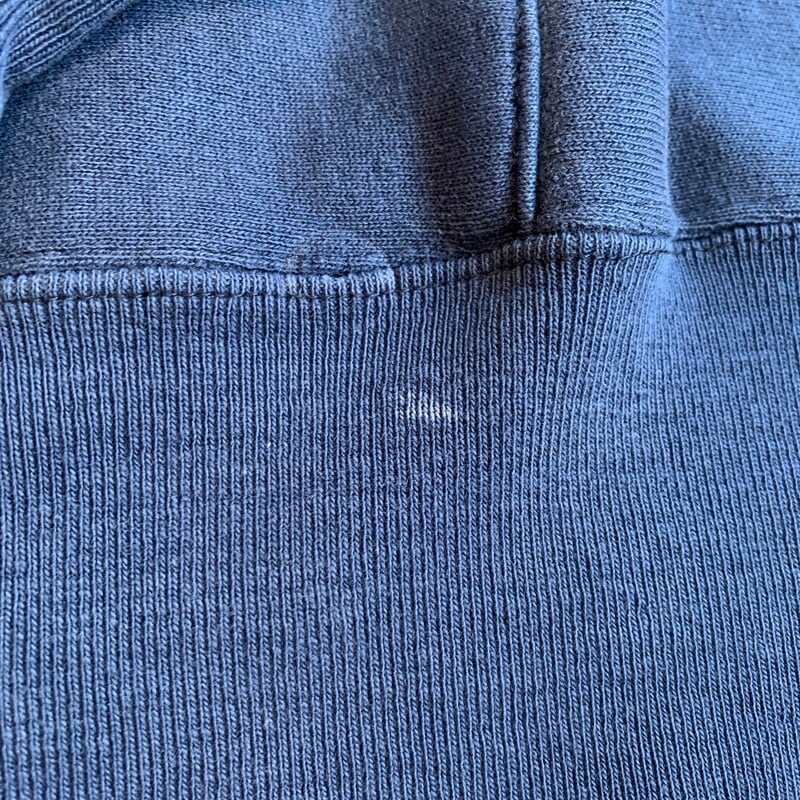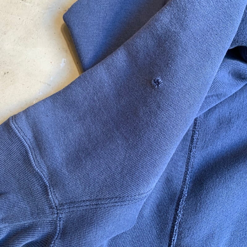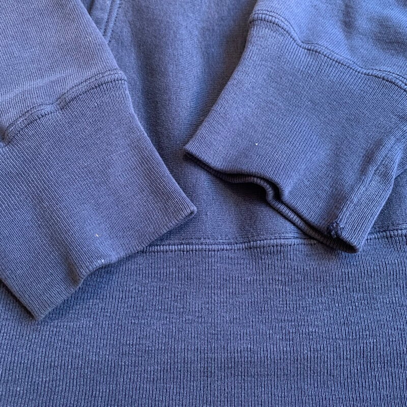 80年代のChampionリバースウィーブスエットパーカーです。OLD ENGLISHフォントでOhio Stateのラバープリントが入る人気の1着。Ohio State物は他のデザインも存在はしますが、こちらのタイプが一番有名です。カレッジ物に付くことが多い2枚タグ仕様です。タグに裂けがございます。程よく色褪せしたネイビーボディが良い味を出しています。リバースパーカーに見られるフード破れはございませんが、少し擦れが見られます。フロントフード付け根に裂けた部分のリペアが施されています。右袖に2か所小穴が見られます。左袖リブに小さなほころびがございます。大きなダメージはありませんので、長く着用していただけます。お探しの方も多いXLサイズです。リバースウィーブの人気も高くなり特にパーカーは価格も高騰していますので、サイズが合う方は是非いかがでしょうか。