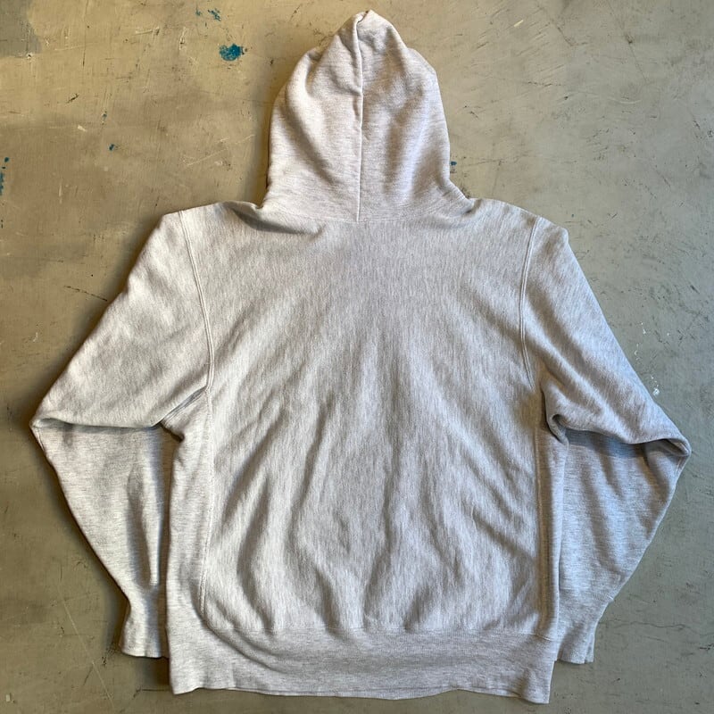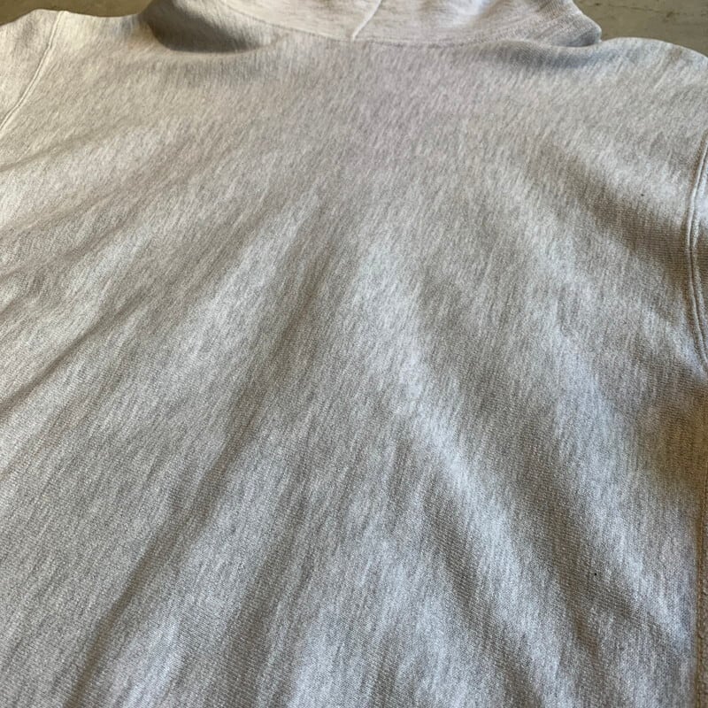 90年代のChampionリバースウィーブスウェットパーカーで1908年にバージニア州ハリソンバーグで設立された大学で、1976年に現在のジェームスマディソン大学へと学名が変更されました。グレーにパープルのプリントが目を惹く1着です。以前にフード無しのスウェットを販売しましたが、こちらは染み込みプリントでは無くラバープリントです。フード付け根と右袖口のリブに若干ダメージがございます。その他目立つダメージや汚れはございません。90年代のリバースウィーブは、やはりフードもボリュームある大き目な作りですので、アウターを着た時のフードの出具合はとてもバランスが良い為オススメです。サイズもXLとゆったりしていますので、お探しの方も多いと思います。リバースパーカーは価格も高騰していますので、サイズが合う方は是非いかがでしょうか。