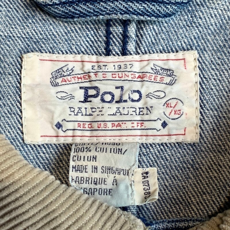 80's 90's Polo RALPH LAUREN デニムハンティングジャケット 白タグ カバーオール 大き目 コーデュロイ襟 XL USA製 希少 ヴィンテージ BA-1308 RM1677H