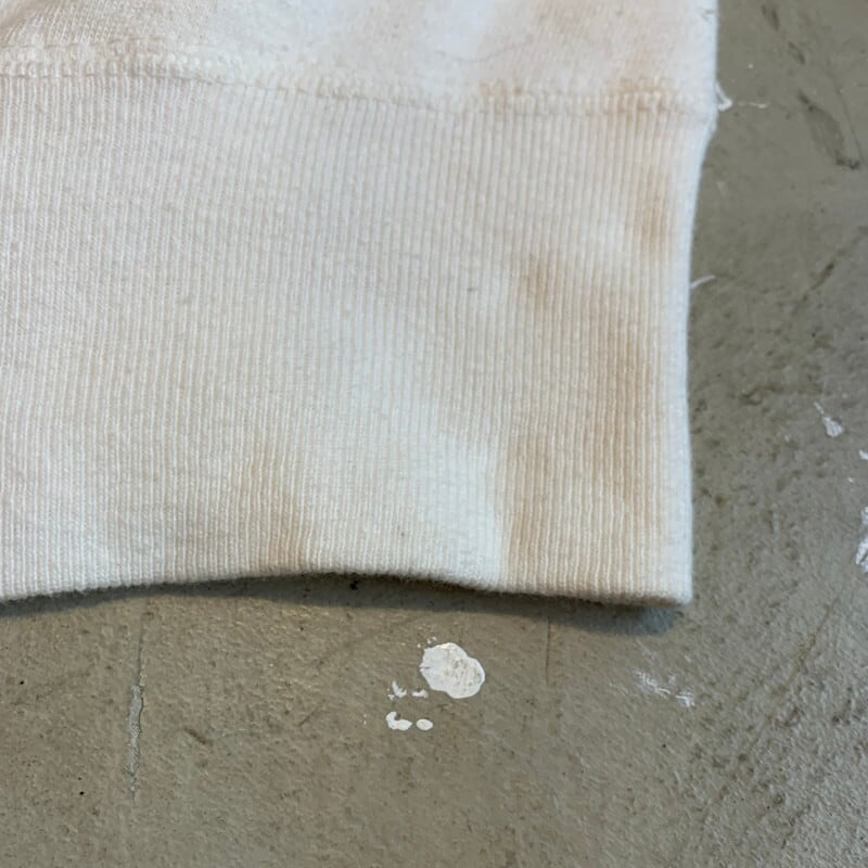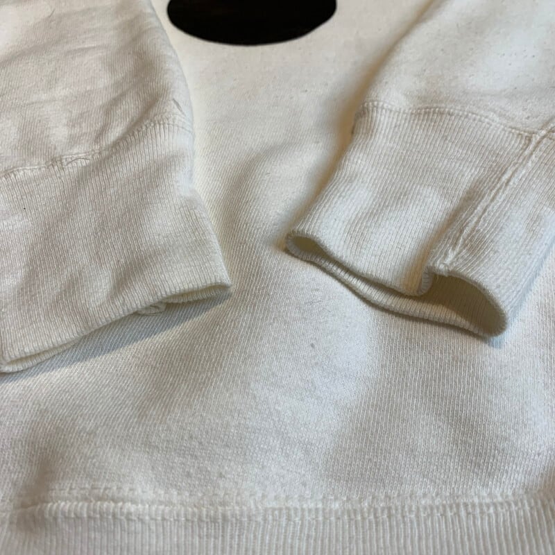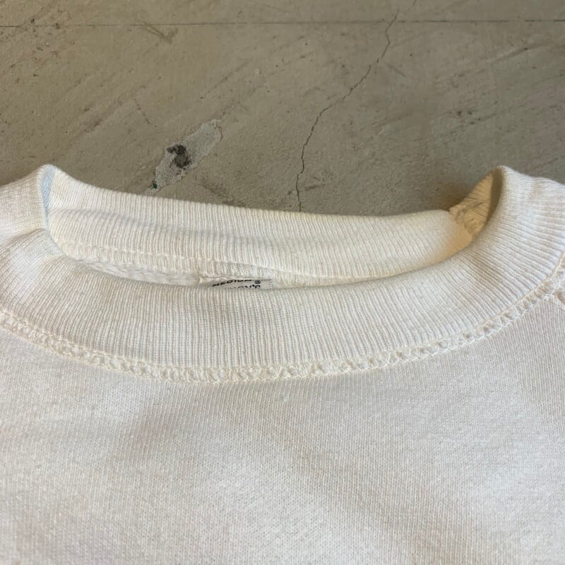 60年代頃のPENNY'Sスウェットシャツです。小ぶりなプリントタグが付くこちらは、ホワイトのラグランスリーブで脇下にガゼットが設けられています。リブも長めに作られています。フロントに入るSLAVEとは”奴隷”という意味でこのあたりの年代物のスウェットで稀に見る事がありますが、あまり出現しないのでマニア心をくすぐる1着ではないでしょうか。多少の毛羽立ちがあり、襟元に若干の汚れもみられますが、ホワイトボディ物としては比較的綺麗な個体です。表記はMですが、着丈も長めに作られています。プリントはもちろんですが、ボディがPENNY'Sというのも嬉しいポイントです。珍しいプリント物がお好きな方やストア系ブランドがお好きな方は是非いかがでしょうか。