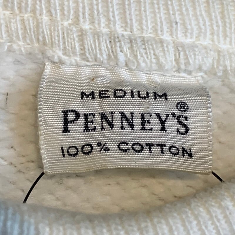 60's PENNY'S ぺニーズ ラグランスリーブスウェットシャツ SLAVE プリント レア ホワイト MEDIUM 大き目 裏起毛 JCPenny ストアブランド 希少 ヴィンテージ BA-1322 RM1691H