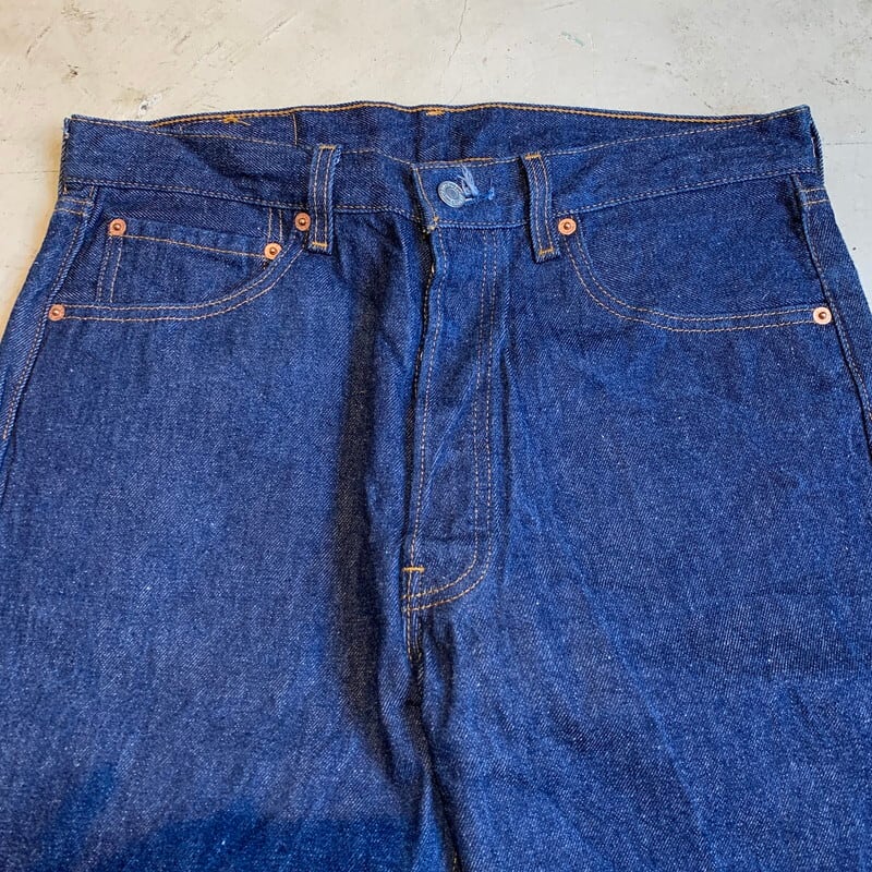 90年代のLevi's501レギュラーデニムです。色残りが9割以上残る濃紺のミントコンディションです。まだ若干糊が残ったような状態です。トップボタン裏は刻印552、95年のUSA製です。レングスは丈詰めされています。折ジワに沿って色がうすくなっている箇所もございますが、使用感は少ない1本です。希少な2000年以前のUSA製モデルで、このように状態の良い個体はなかなか見つかりませんので、お探しだった方は是非いかがでしょうか。イチから育てたい方にお勧めな1本です。サイズW34表記ですが実寸W33です。