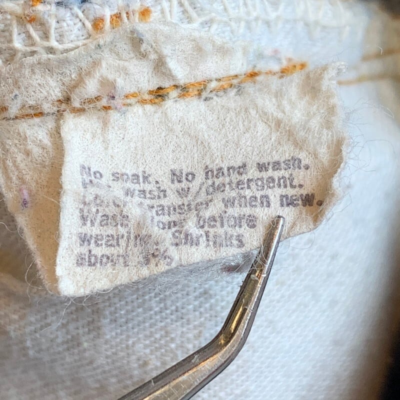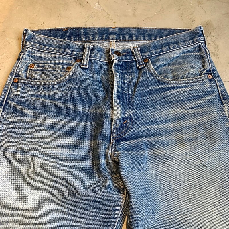 70年代のLevi's505-0217です。79年表記。トップボタン刻印8、42TALON、バックポケット裏チェーン、アウトシーム脇割、赤タブスモールe、アウトシーム脇割り。全体に後期らしいムラ感のある色落ちが見られる1本。薄めではありますが、ヒゲやハチノスも確認できます。501に比べ、ウエストがやや緩くテーパードストレートですっきりとしたシルエットです。内股と裾、バックポケットに若干の擦れはございますが、大きなダメージやリペアはございません。色が薄めなので、春先に合わせやすいのではないでしょうか。レングスもオリジナルでしっかりと丈がありますので、背の高い方にもお勧めです。80年代の赤耳と同じカテゴライズで見られがちな後期ですが、やはり66モデルというネームバリューは魅力的だと思います。ヴィンテージリーバイスの価格も年々高まり、今後さらに値上がりしてもおかしくないアイテムですので、お探しだった方や、ヴィンテージデニムを初めて買いたいといった方には是非手に取っていただきたいアイテムです。ウエスト実寸W31。