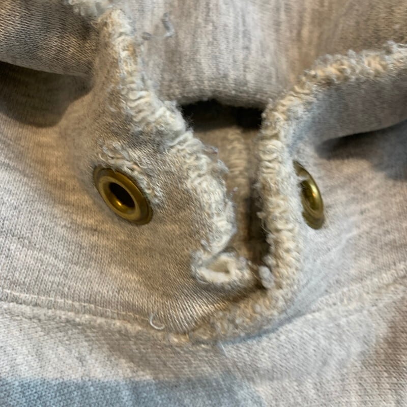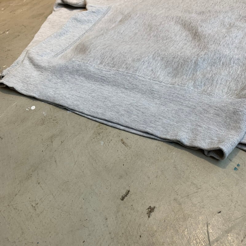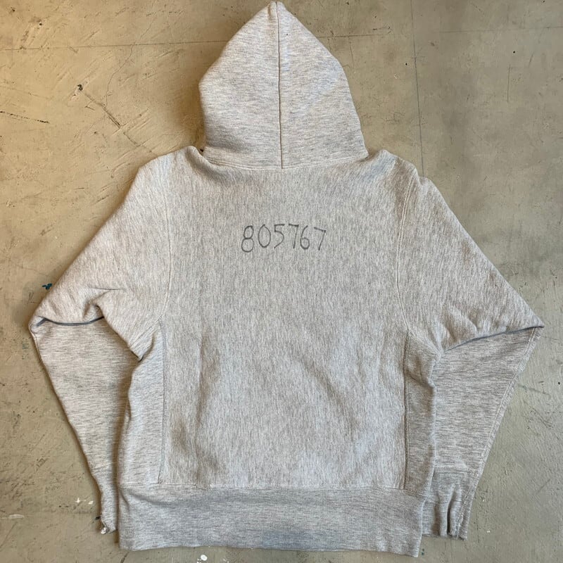 70年代頃のChampionリバースウィーブスウェットパーカーです。アメリカ海軍及び海兵隊の士官学校として知られるU.S.NAVAL ACADEMYの染み込みプリントが入る人気の1着です。チャンピオン以外のサプライヤーも色々存在していますが、やはり同デザインでもチャンピオンのリバースウィーブは別格です。70年代中期頃の単色タグというのも嬉しいポイントです。フード縁と袖口のリブにダメージが見られます。背面には兵士の識別番号のようなナンバリングが書かれています。サイズはSMALLですので、小柄な男性や女性にお勧めです。年々リバースウィーブが枯渇してきており、クルーネックに比べフーディーは特に絶滅危惧種と言えるアイテムになりつつあります。さらにミリタリー関連のプリント物となると希少な上に価格も高騰しており、今を逃すととんでもない金額まで行ってしまいそうな勢いです。サイズは小さめですが、コレクションとしても今後価値の下がる事はないアイテムだと思います。