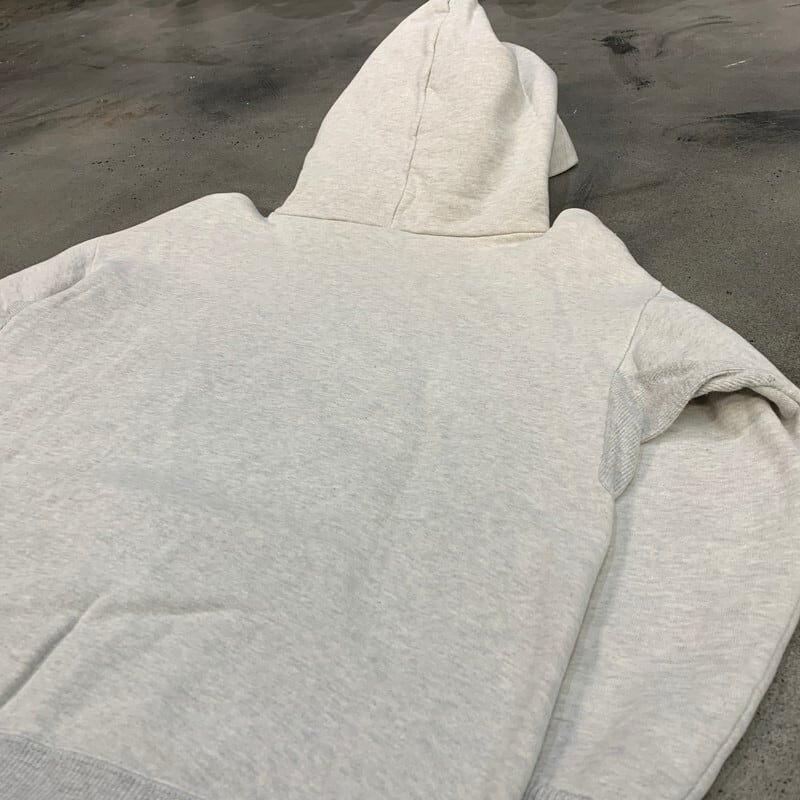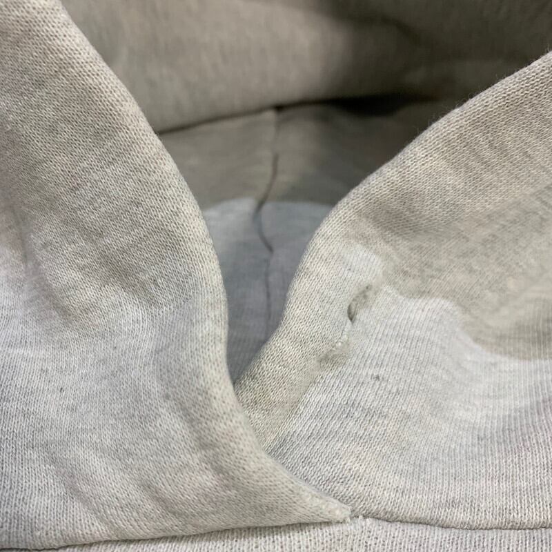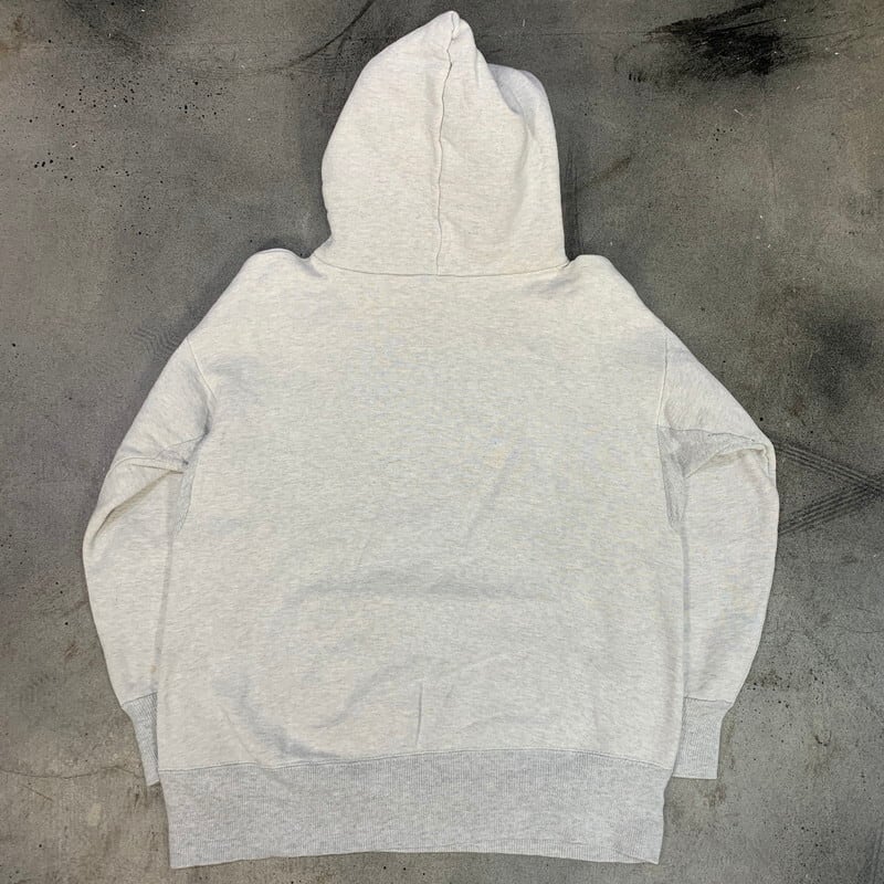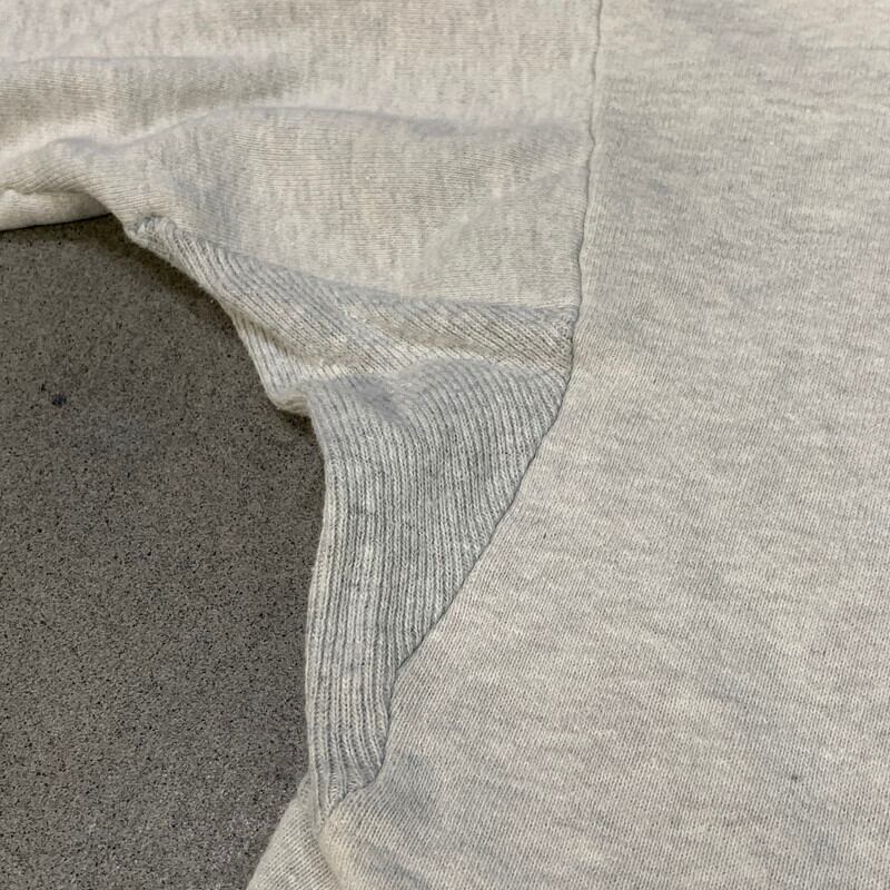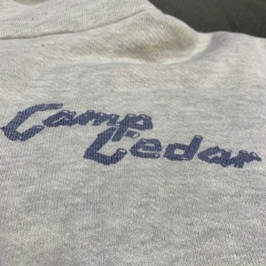 50年代頃のCamp Cederスウェットパーカーです。10代の少年少女が野外活動や集団生活を通して様々な行事を体験できる、夏季休暇に行われるサマーキャンプ関連の物で、スタッフや、キャビンリーダーと呼ばれる10代後半の学生に支給されていたアイテムのようです。左胸には染み込みプリントが入り、ポケットはセンターステッチの入る古いセパレートタイプ、脇には嵌め込み式のガゼットが付く珍しい仕様です。裾リブは2本針、その他は内縫いとなっています。首元にはブランドタグは無く、代わりに着用していたであろう人物のネームタグが付いています。ボディーとリブは2トーン仕様です。裾リブに1か所、フード裏に2か所小穴がありますがその他ダメージは無く全体的にグッドコンディションと言える1着です。セパレートステッチが入るアイテムは古着市場でもなかなか出ない希少なディティールですので、探されていた方は是非この機会にいかがでしょうか。サイズはML位の着丈ですが、袖はやや短めです。