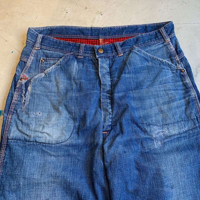 50's BLUE HORSESHOE BRAND デニムペインターパンツ 裏ネル ワークパンツ マイナーブランド SERVAL ピンロックジッパー リペア有 W33~34 希少 ヴィンテージ BA-1357 RM1726H