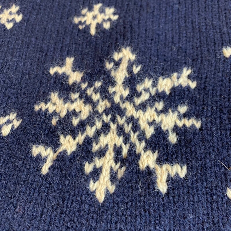 90年代頃のJ.CREWロールネックウールセーターです。OLD GAPと共に人気の高いブランドです。ウール100%のクルーネックセーターにスノーフレーク柄を編み込んだアイテムです。ネイビーとオフホワイトの落ち着いた2トーンなので、柄物でも比較的合わせやすいデザインだと思います。左胸に引っかけてしまったような箇所がありますがそこまで目立ちません。全体にセーター特有の毛羽立ちはございますが、毛玉等は除去していますので綺麗です。M表記ですがややゆとりがあります。90's頃のグッドレギュラーをお探しな方は是非いかがでしょうか。