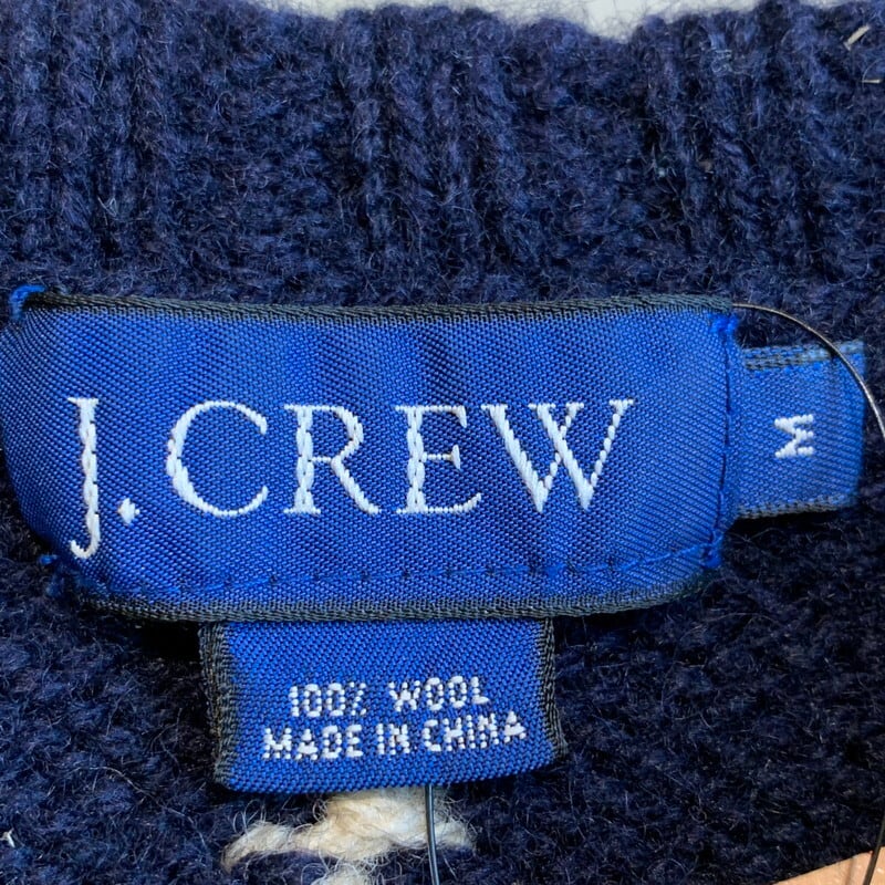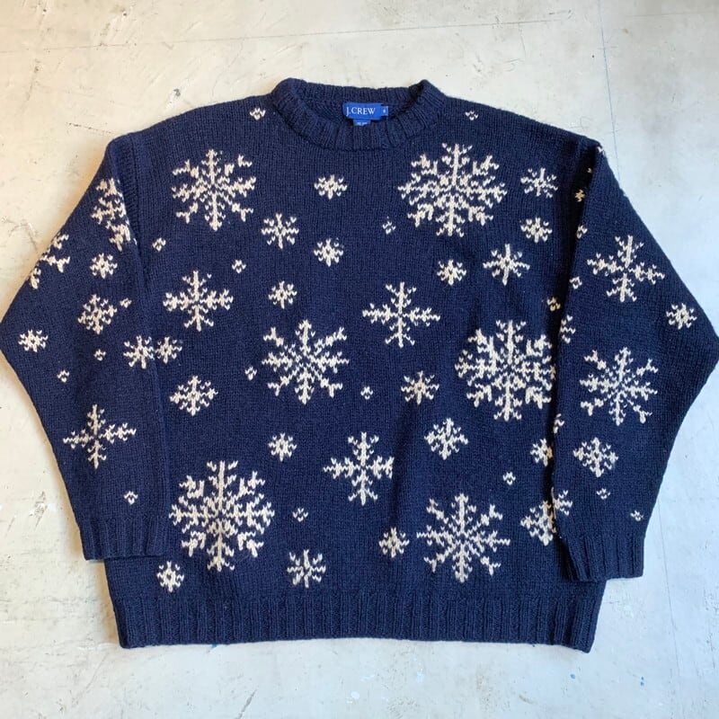 90's~ J.CREW ジェイクルー クルーネックウールセーター スノーフレーク 雪柄 ネイビー 青タグ グッドレギュラー Mサイズ 希少 ヴィンテージ BA-1363 RM1732H