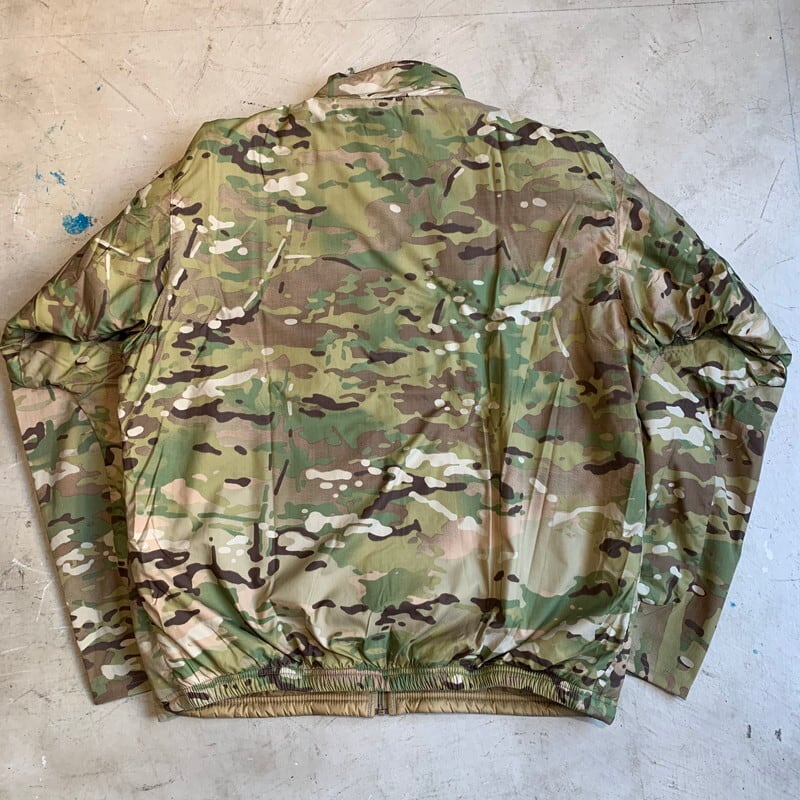 WILD THINGSのタクティカルライン、WT TACTICAL マルチカムローロフトジャケットです。モダンミリタリーのアイテムで有名どころはハッピースーツと呼ばれるアイテムですが、使用しているプリマロフトの分量で区別されており、ハッピースーツはハイロフトに位置づけされ今回の商品は軽量化されたローロフトとなります。保温性と耐久性を兼ね備え機能性も充実した作りが特徴です。コヨーテカラーのローロフトジャケットに比べこのマルチカムパターンの方が見かける機会は少ないように思います。使用感も少なく非常に綺麗な個体はです。サイズはL。170cm70kgのスタッフで丁度良いサイズ感です。お探しだった方は必見のアイテムです。