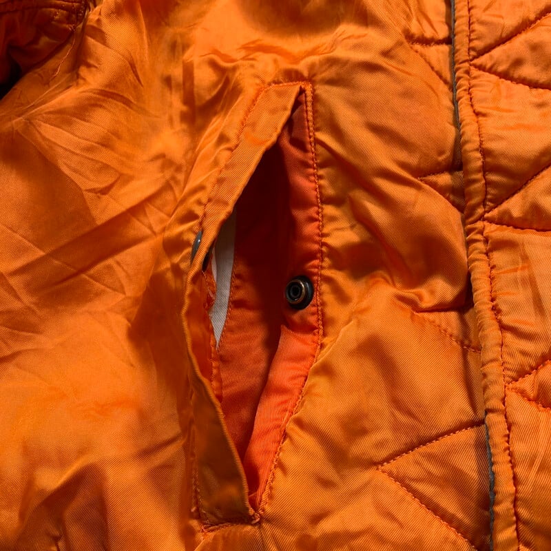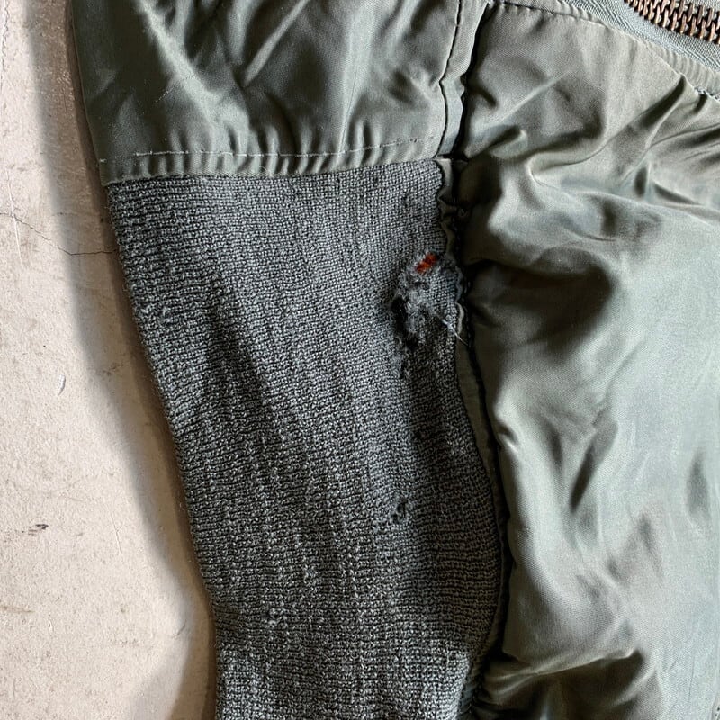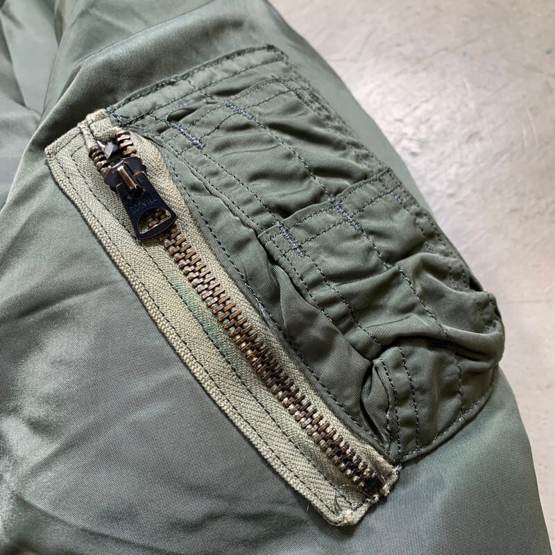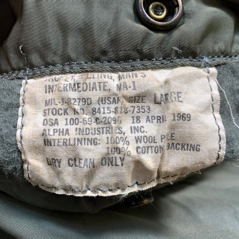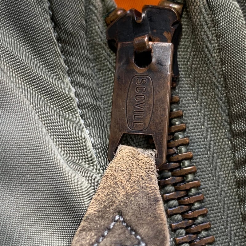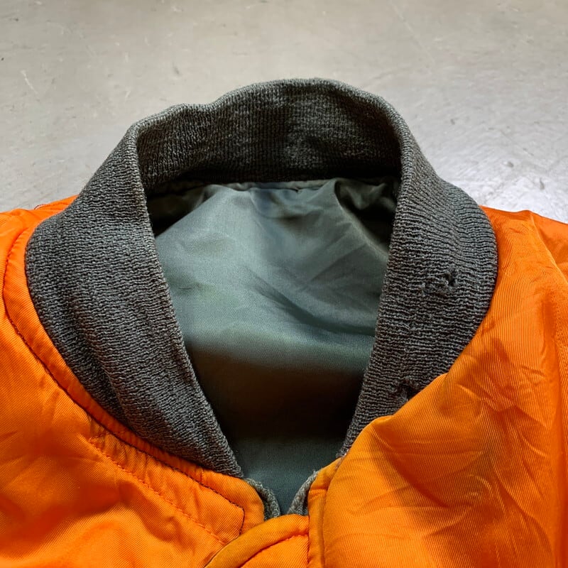 60年代のU.S.AIR FOIRCE MA-1フライトジャケットです。コントラクターはALPHA INDUSTRIES社、ミルスペックはMIL-J-8279D、DSA100-69-C-2096。69年製のこちらはフロントはSCOVILL社のバタフライジッパーです。古い年代のMA-1等のフライトジャケットはヤケやシミが見られる個体が多いですが、こちらはシミやヤケはほとんど無く比較的綺麗な1着です。リブに所々虫食いがございます。サイズはLARGEですので、お探しの方も多いのではないでしょうか。レスキューオレンジ面を表にしたコーディネートが個人的にオススメです。防寒性も高いので、突然の寒波でも心強いアイテムです。