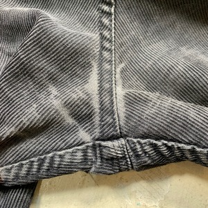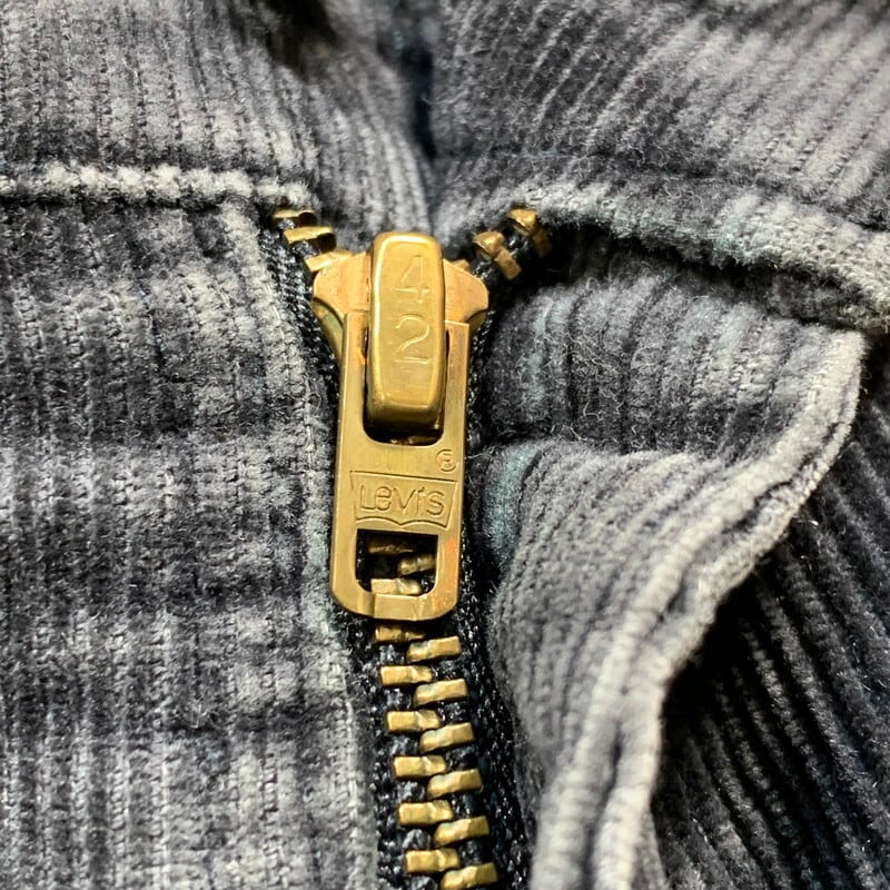 80年代のLevi's519-1558ブラックコーデュロイパンツです。519コーデュロイパンツの中でも特に人気の高いブラックです。フロントは少し珍しい社名入りの42TALONジッパー、コットンポリエステル、USA製、白タブスモールe。全体的に墨黒のように色落ちした具合が◎。膝下から裾にかけて幅がリサイズされており、通常のストレートシルエットに比べスリムシルエットとなっています。お尻の間付近の生地がやや薄くなっていますが、今のところ問題はなさそうです。気になる方は穿かれる前に補強しても良いかもしれません。サイズはW33とゴールデンです。606のようなスリムシルエットがお好きな方は是非いかがでしょうか。