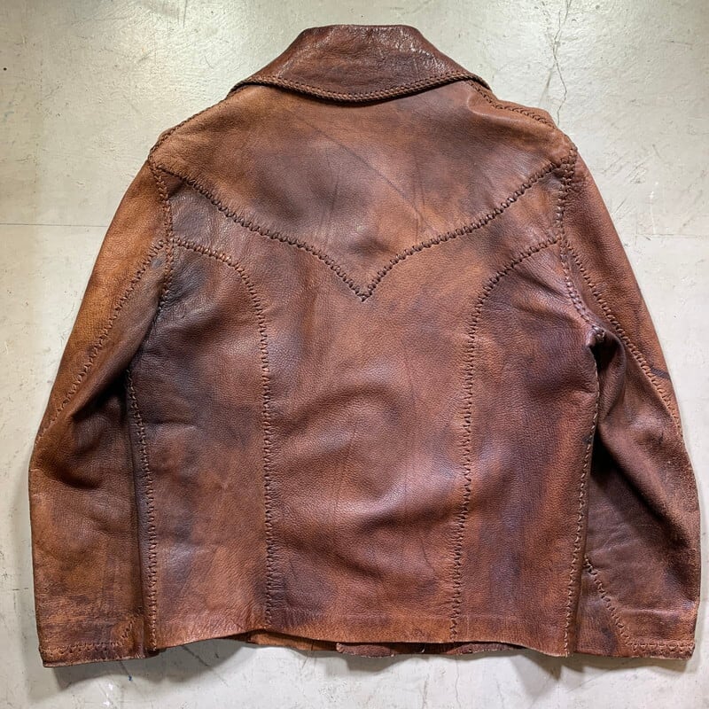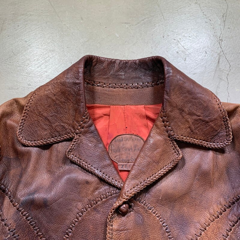 70's North Beach Leather ノースビーチ クラフトレザージャケット ハンドクラフト ブラウン 包みボタン ヒッピーカルチャー 名作 XL メキシコ製 希少 ヴィンテージ BA-1410 RM1779H