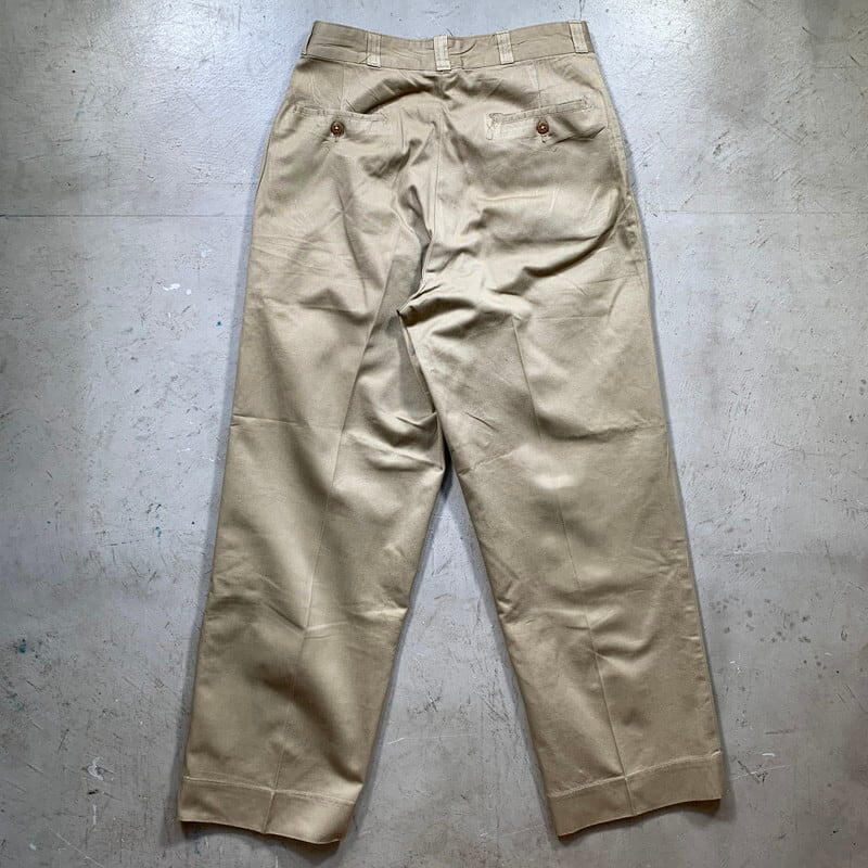 50's U.S.ARMY チノトラウザーズ MIL-T-2064B サイドシングル 内縫い 尿素ボタン ミリタリー 実寸W30 リペア有 希少 ヴィンテージ BA-1431 RM1800H