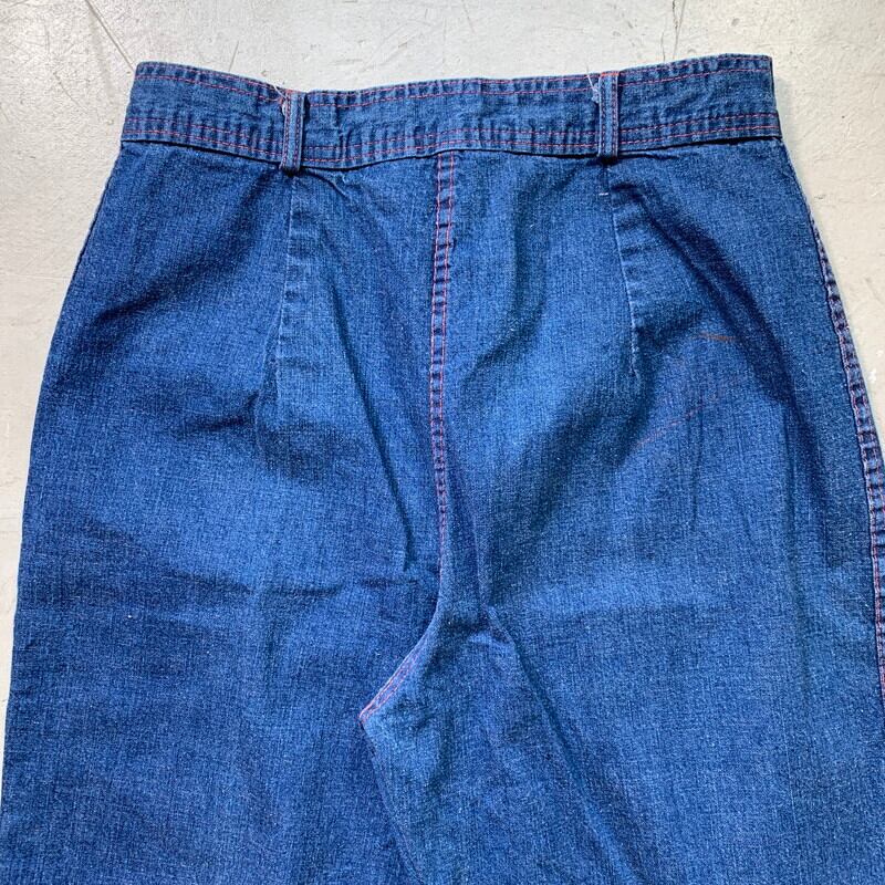 60's 70's Unknown ライトデニムバギーパンツ ランチパンツ ポケット無 ヒッピー オレンジステッチ アルミピンロックジッパー 美品 W32 希少 ヴィンテージ BA-1447 RM1816H