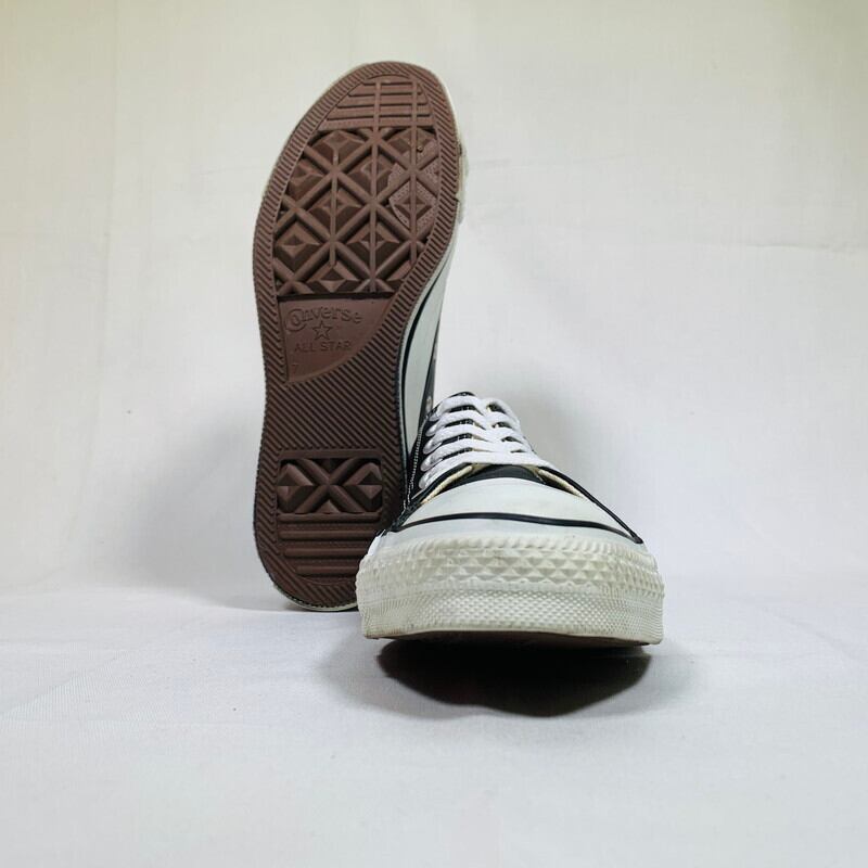 90年代後期のコンバースオールスターLOWレザーです。使用感が少ない箱付きミントコンディションです。2000年代初頭にUSAコンバースが倒産し、以降USA製コンバースは年々価格も高騰しております。定番のキャンバスとは違いレザーを使用したハイエンドモデルです。サイズはUS7(25.5cm)とメンズではやや小さいサイズです。足の小さい方や、女性の方にデカ履きで合わせて頂いても良いかも知れません。USA製は今後さらに入手が難しくなると思われますので、是非今のうちにゲットしてみてはいかがでしょうか。