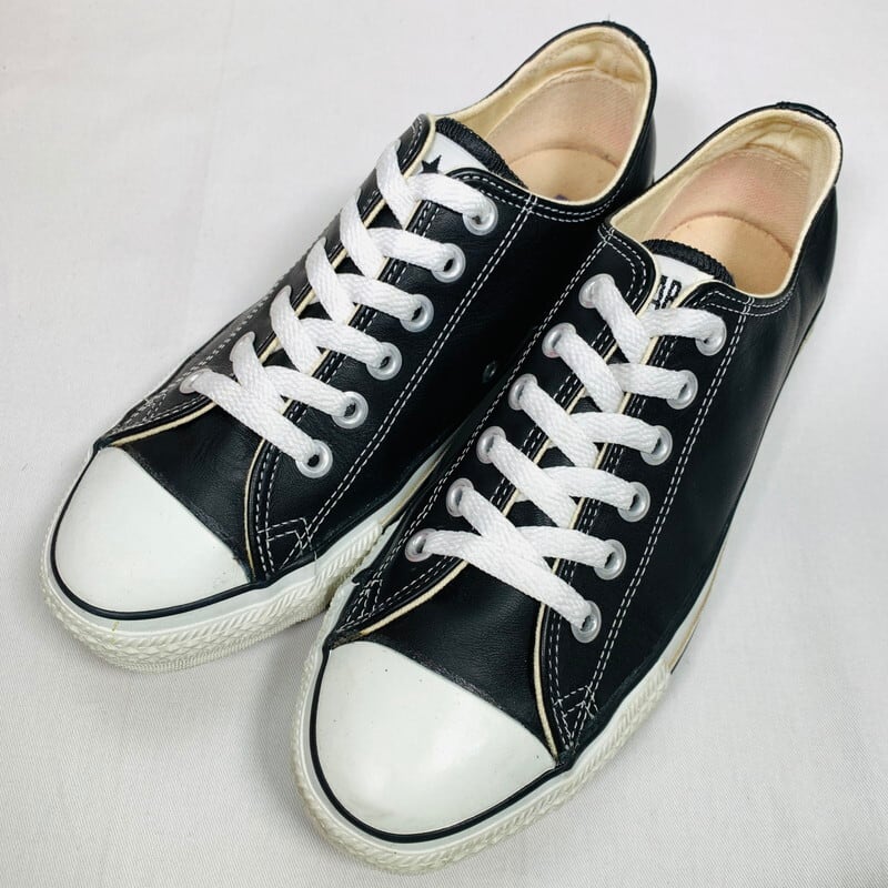 90's CONVERSE コンバース ALL STAR LOW LEATHER オールスターロー レザースニーカー 黒 ブラック ミントコンディション US7 25.5cm USA製 箱付き 希少 ヴィンテージ BA-1468 RM1837H