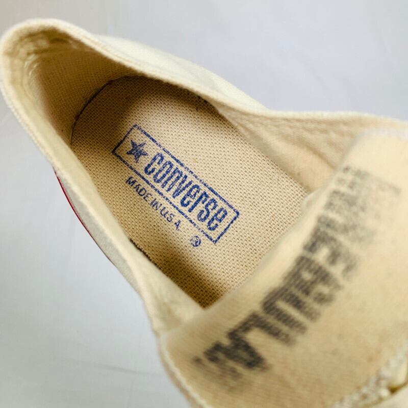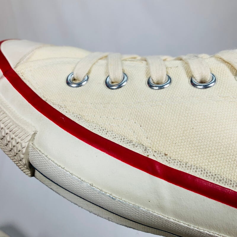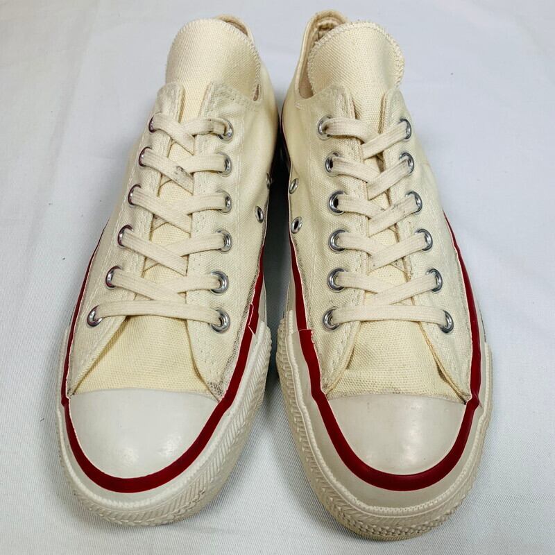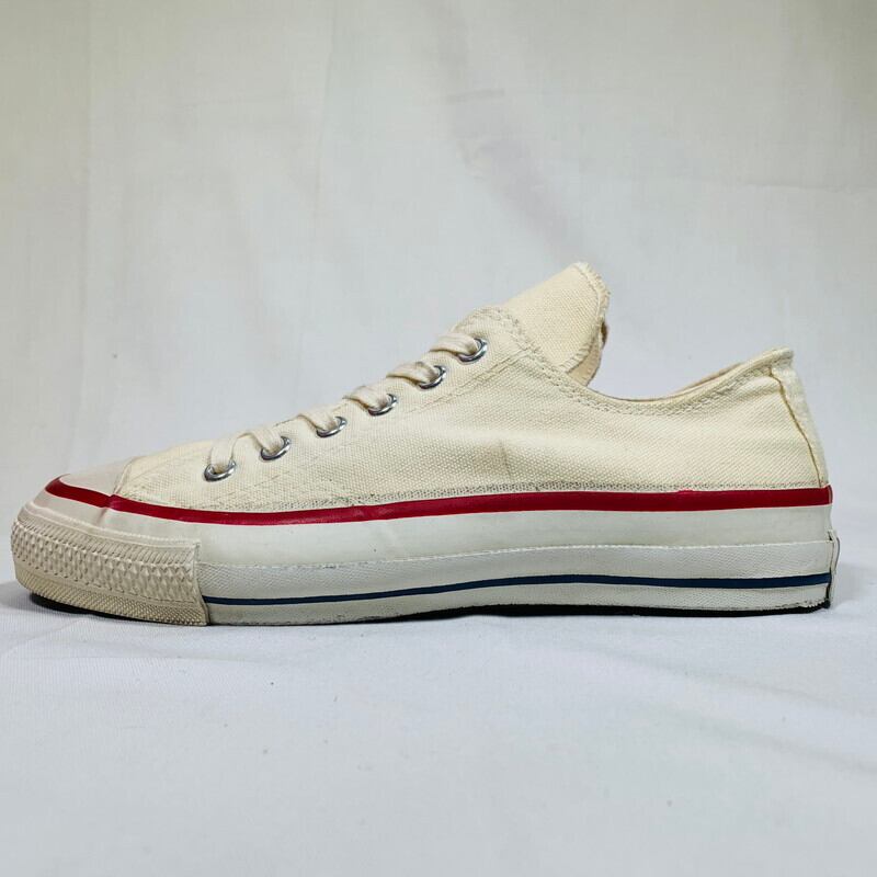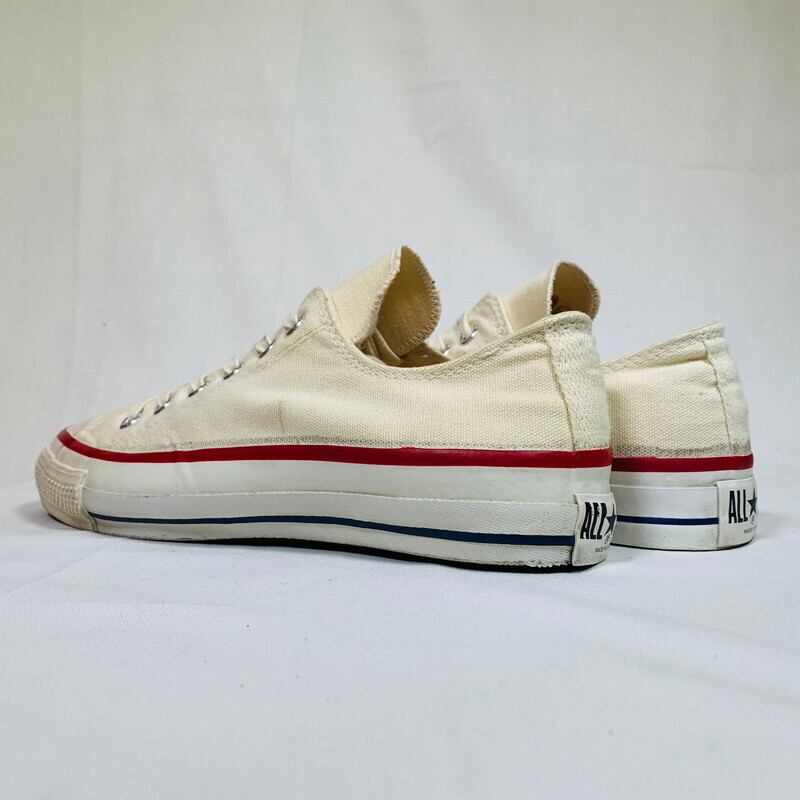 80's CONVERSE コンバース ALL STAR LOW オールスターロー キャンバススニーカー 生成り オフホワイト サイドステッチ 当て布 青文字青枠 グッドコンディション US7 25.5cm USA製 希少 ヴィンテージ BA-1470 RM1839H