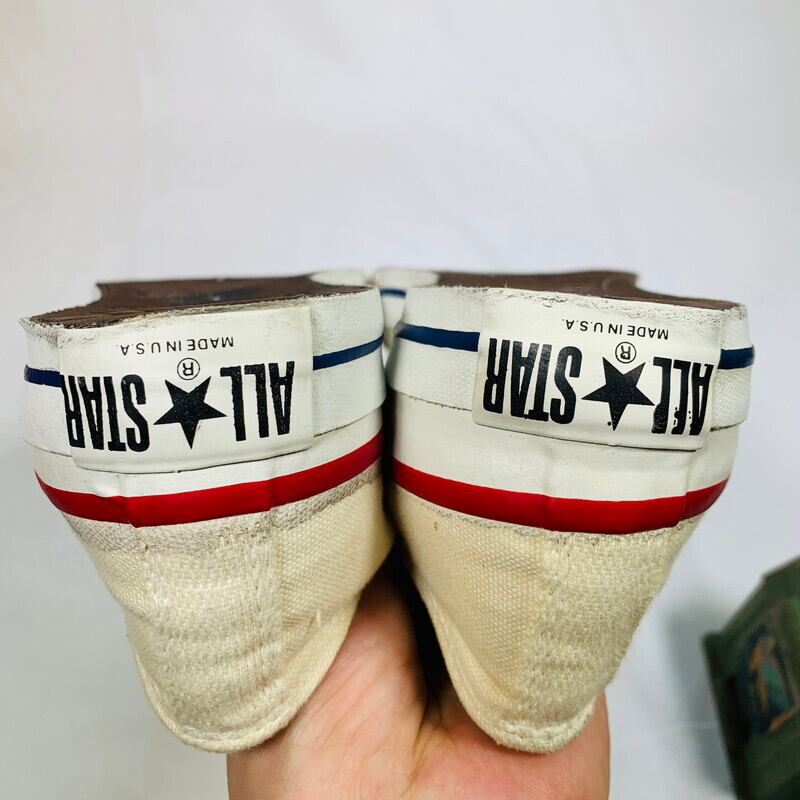 80年代のCONVERSEオールスターローです。サイドステッチ、当て布が付き青文字青枠の80年代前期モデルで、使用感が少ないグッドコンディションです。アメカジの永久定番と言えるオールスターは、2000年初頭にUSA製が廃盤となり、近年その希少性から価格が高騰し続けております。ファッションのカテゴリーを選ばず、どんなスタイルでも合わせられるアイテムです。シュータン裏にIRREGULARスタンプが押されています。保管による、スレや薄汚れが見られる箇所もございますが、大変貴重なアイテムですので、お探しだった方は必見です。