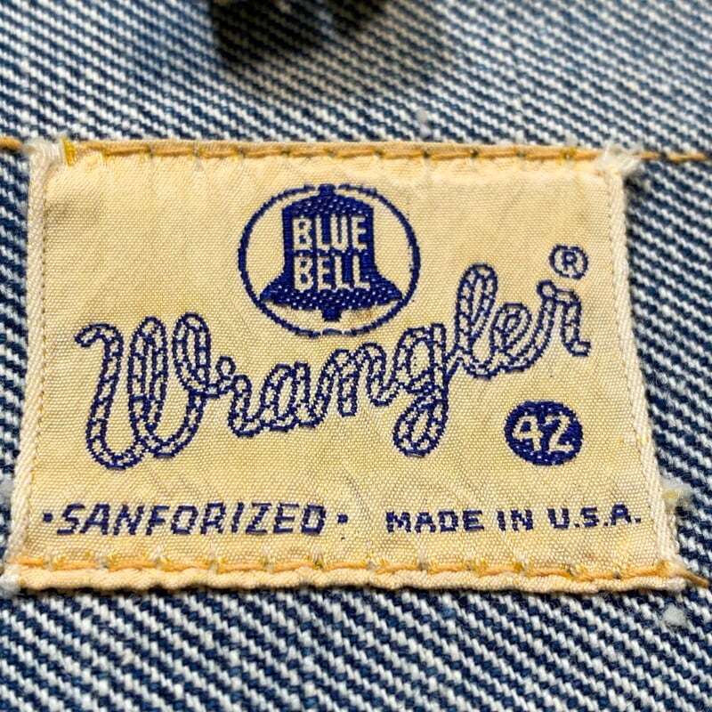 60's WRANGLER ラングラー デニムジャケット 11MJZ 後期 縦ベル BLUE BELL GRIPPER サイズ42 希少 ヴィンテージ BA-1499 RM1868H 希少 ヴィンテージ BA-1499 RM1868H