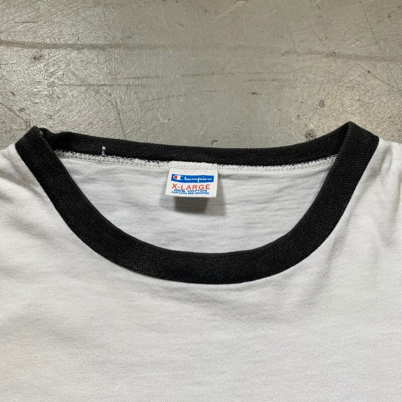 70's~80's Champion チャンピオン リンガーTee PIG POWER バータグ後期 白黒 モノトーン ホワイト ブラック X-LARGE USA製 希少 ヴィンテージ BA-1454 RM1873H