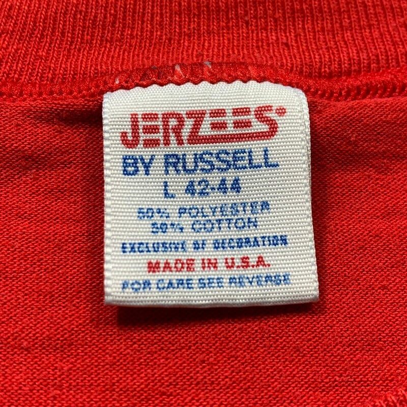 80年代のNIKE BLOOMSDAYマラソンフィニッシャーTシャツです。1988年にナイキが協賛しているマラソン大会の完走者にのみ渡されるアイテムです。ボディはJERZEES社が使用されています。右袖にNIKEのロゴがプリントされています。フロントプリントにひび割れがございます。右肩付け根に小穴が1箇所見られます。その他は汚れ等も無く良好です。社外ボディを使用したこのような協賛Teeは種類も多くデザインも豊富なので、コレクションしてみても良いと思います。Lサイズです。