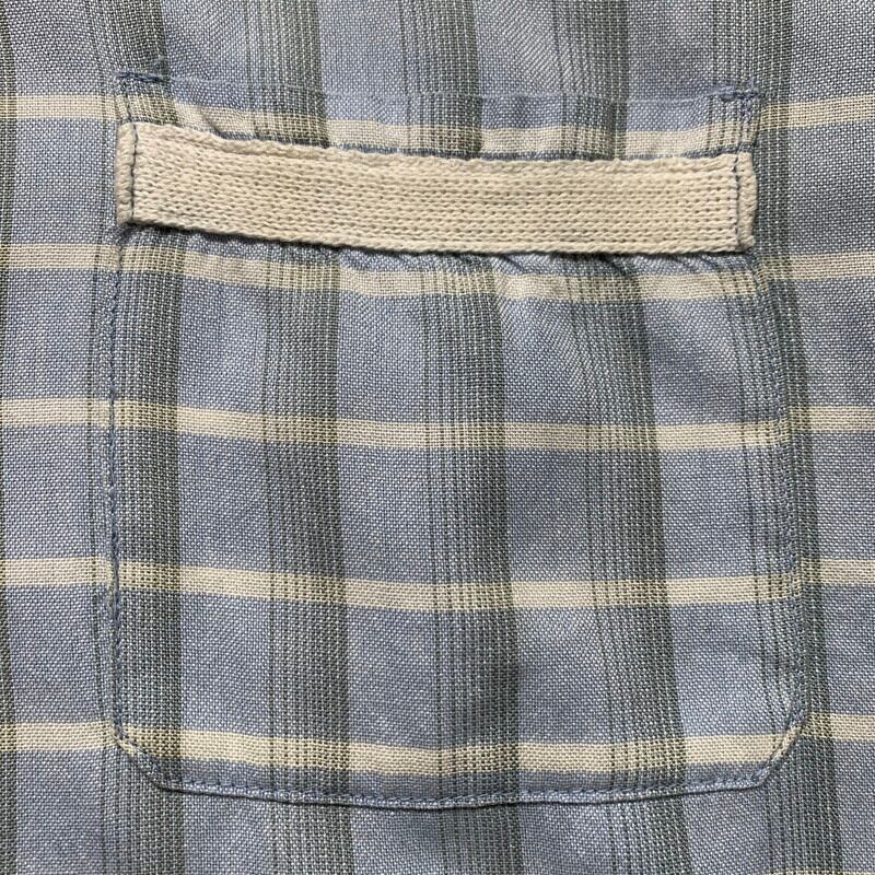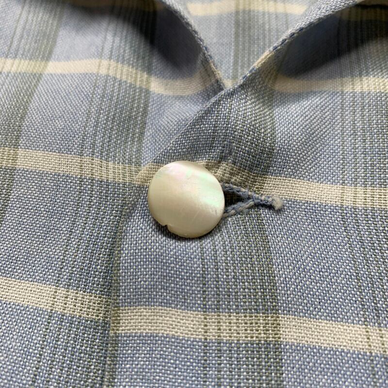 50年代頃のUnknownニットコンビオープンカラーシャツです。ブランドタグが無い為詳細は不明ですが、興味深いディティールの1着です。襟は袋縫いで、胸とポケットにニットテープが縫い付けられたデザインです。襟元のカッティングも独特で、1950年代当時にエルヴィスプレスリーがこちらの襟元と同じ仕様のシャツを着用している写真がございました。ダメージはございませんが、若干肩回りに色褪せが見られます。シンプルながらどこかロカビリーを感じるデザインでとてもかっこ良いアイテムです。サイズ表記はございませんが、ゆとりのあるL相当です。