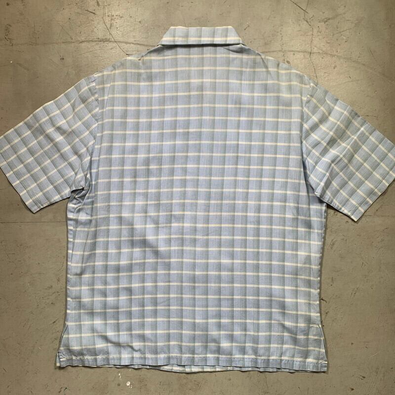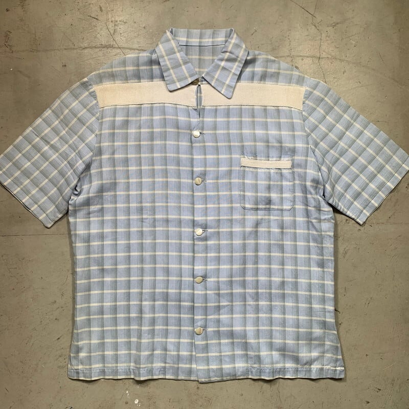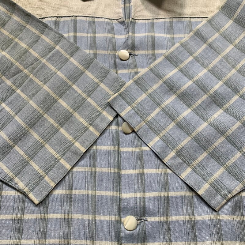 50's Unknown ニットコンビ オープンカラーシャツ ロカビリーファッション スポーツシャツ チェック 開襟 エルビス L位 希少 ヴィンテージ BA-1464 RM1883H