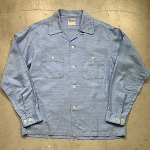 50~60's ENSENADA オープンカラーシャツ Winkle-SHED DAN RIVER 絣 ライトブルー ロカビリー 開襟シャツ 長袖 Mサイズ 希少 ヴィンテージ BA-1465 RM1884H