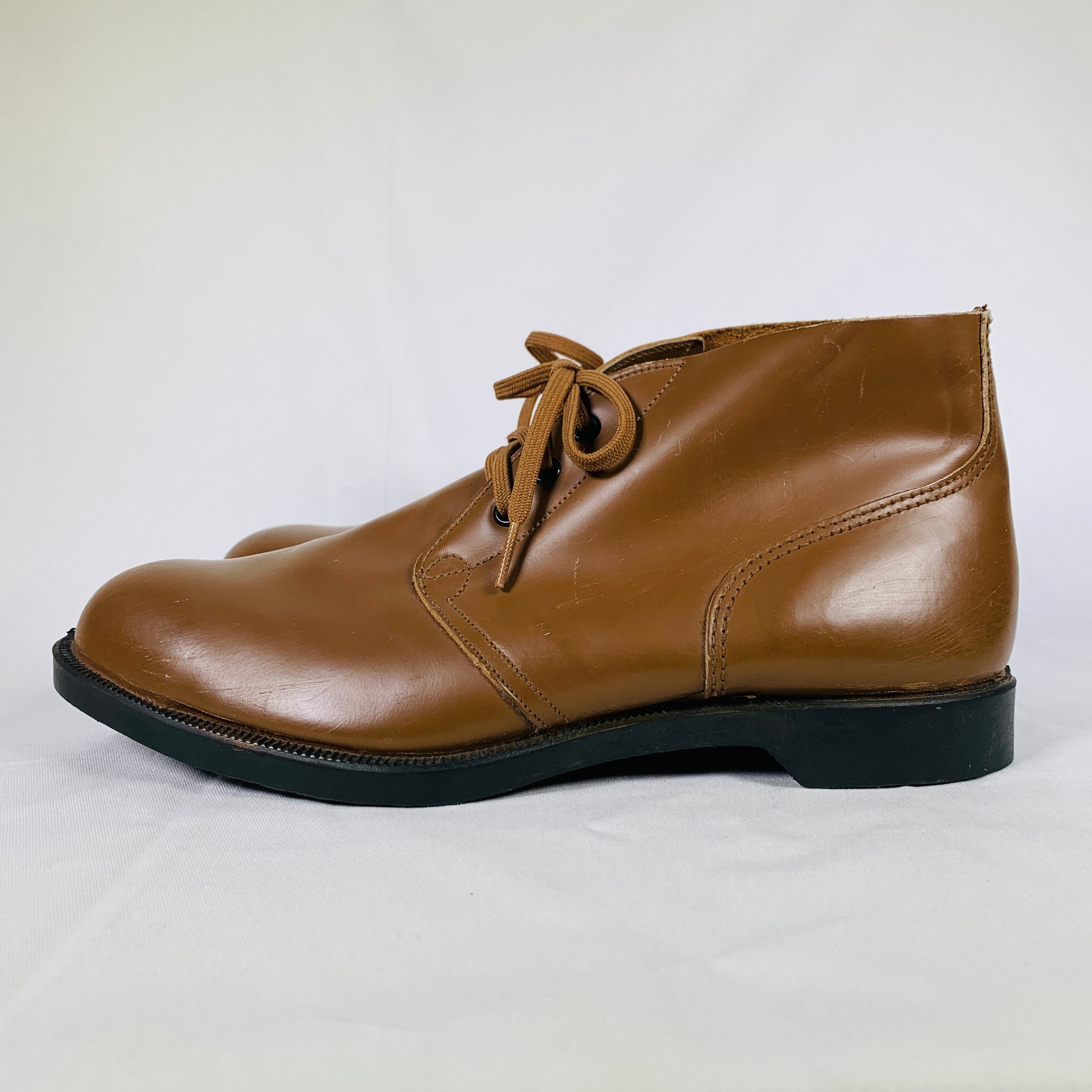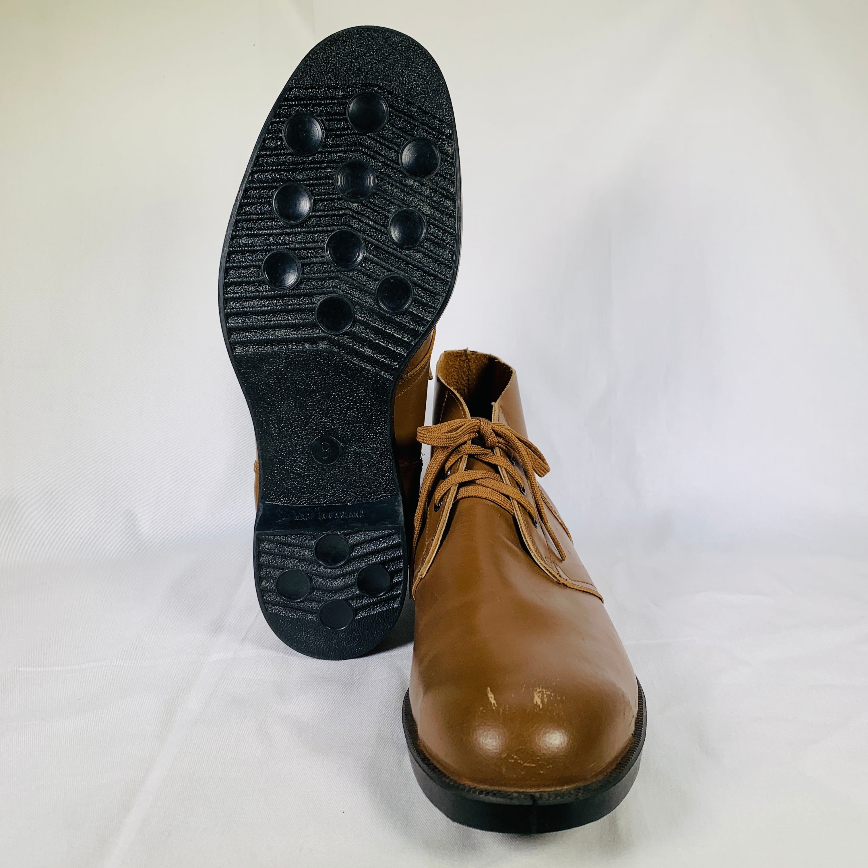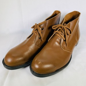 70年代から80年代頃の物と思われるイギリス軍チャッカブーツです。こちらは少し珍しいモカブラウンタイプです。Royal Electrical & Mechanical Engineers(王立陸軍電気機械技術兵団、通称REME)と呼ばれるエンジニアに支給されていた物という話もあります。米海軍でもチャッカブーツが採用されていますが、通常はブラックが主流です。英国軍のチャッカブーツの流通量も少ないですが、こちらのモカブラウンタイプは特に見かけないと思います。ソールのヘリも殆ど無く実用された形跡は少ないようです。デッドストックに近いコンディションですが、アッパーやサイドに擦れた傷が見られます。アウトサイドにはうっすらとですが英国官給品の証であるブロードアローが確認できます。つま先はスチールトゥとなっています。サイズはUK9で、27~27.5cm相当です。ユーロミリタリーがお好きな方は是非いかがでしょうか。