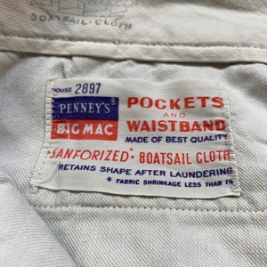50's 60's BIG MAC ビッグマック ワークチノトラウザーズ チノパン PENNY'S ストアブランド グレー CONMAR ピンロック ダメージ有り W32 希少 ヴィンテージ BA-1516 RM1935H