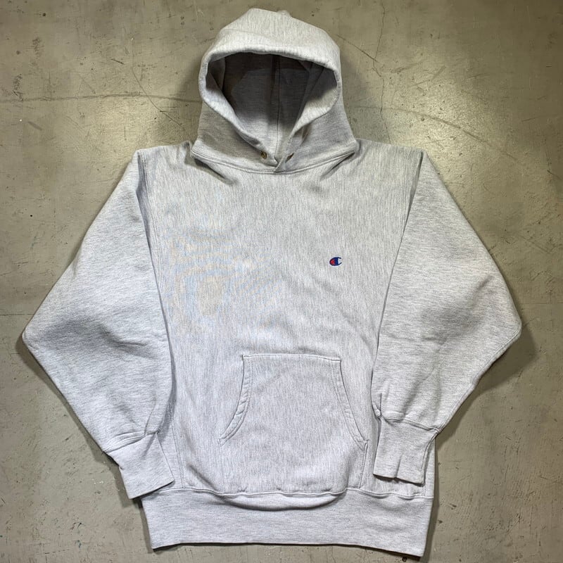 90's Champion チャンピオン リバースウィーブ スウェットパーカー 目玉 刺繍タグ グレー LARGE USA製 希少 ヴィンテージ BA-1542 RM1961H