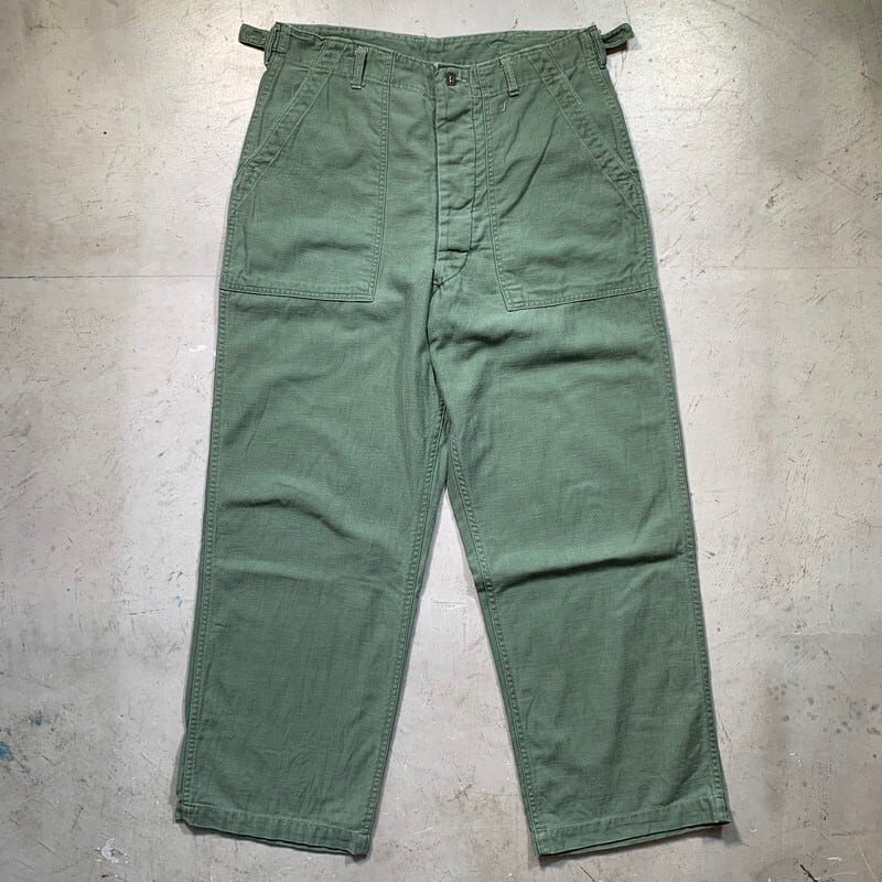 50's 60's U.S.ARMY ベイカーパンツ OG107 コットンサテン サイドアジャスト有り 米軍 MEDIUM 実寸W32 ミリタリー 希少 ヴィンテージ BA-1551 RM1970H
