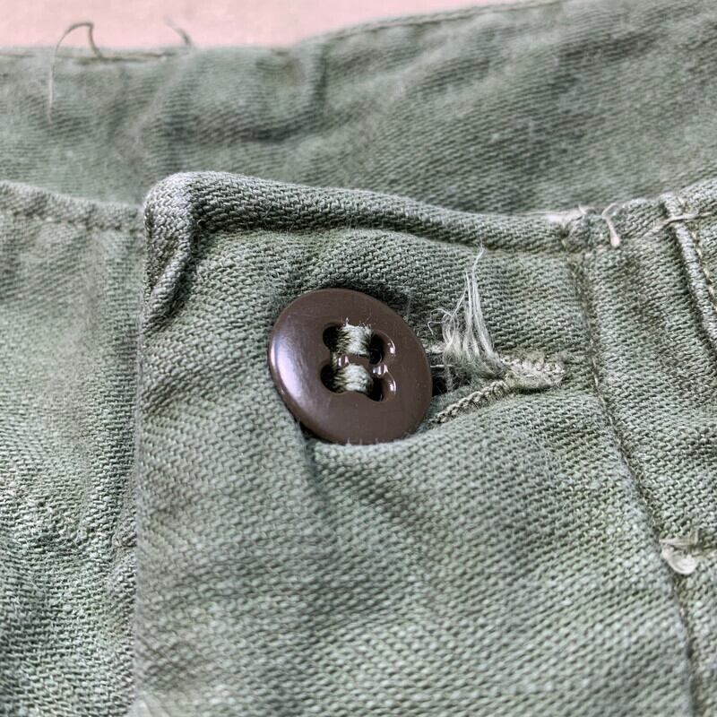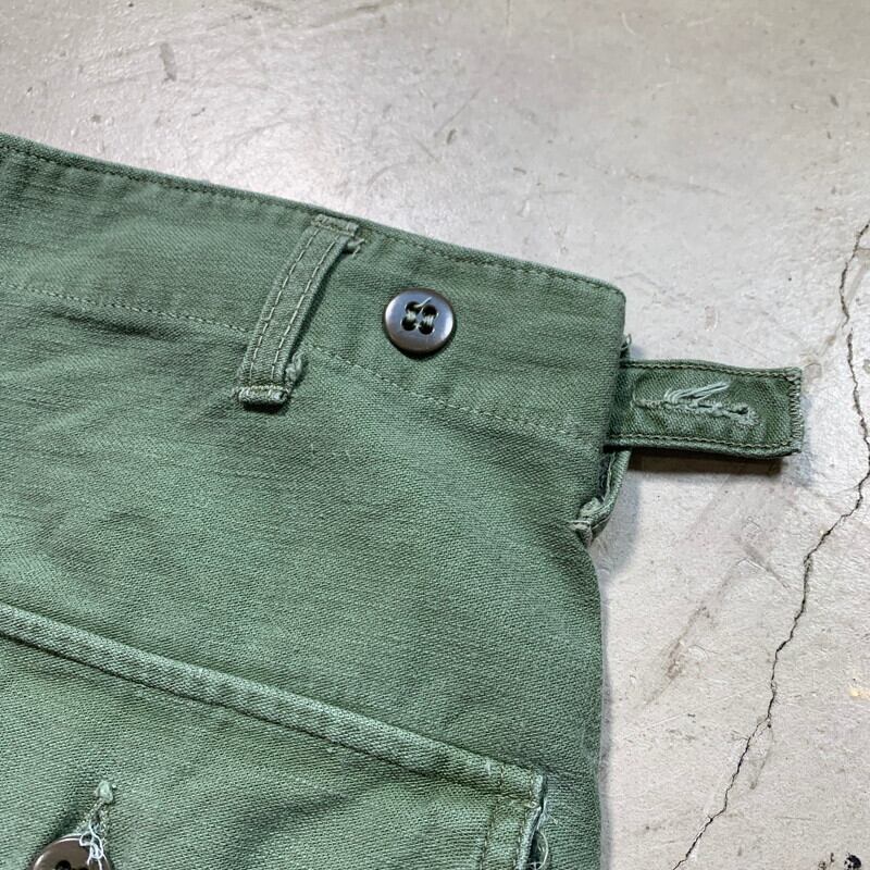 50年代後半から60年代初頭頃のU.S.ARMYベイカーパンツです。ミルスペックは恐らくスタンプタイプのモデルだと思いますが、印字は確認できません。60年代半ばには廃止されるサイドの調整用アジャストボタンが付きます。ボタンはオリーブです。多少の使用感がありやや毛羽立ちや色褪せはあるものの、生地はしっかりしていてダメージは特にございません。サイズはW32ですのでゴールデンサイズです。サイドのアジャスターボタンが付くタイプも見つけにくくなってきていますので、是非この機会にいかがでしょうか。