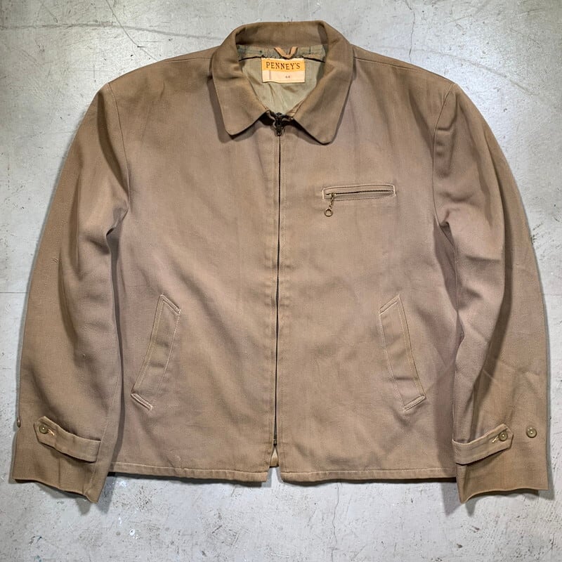 50's PENNEY'S ぺニーズ ギャバジンスポーツジャケット ギャバジャン ワークジャケット ストアブランド JCPenney CROWNジッパー ベージュ サイズ44 希少 ヴィンテージ BA-1563 RM1982H