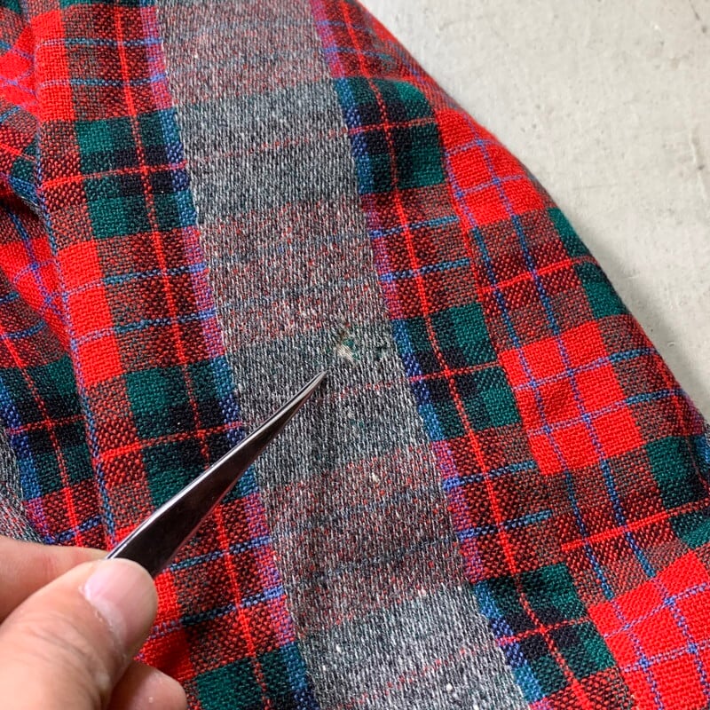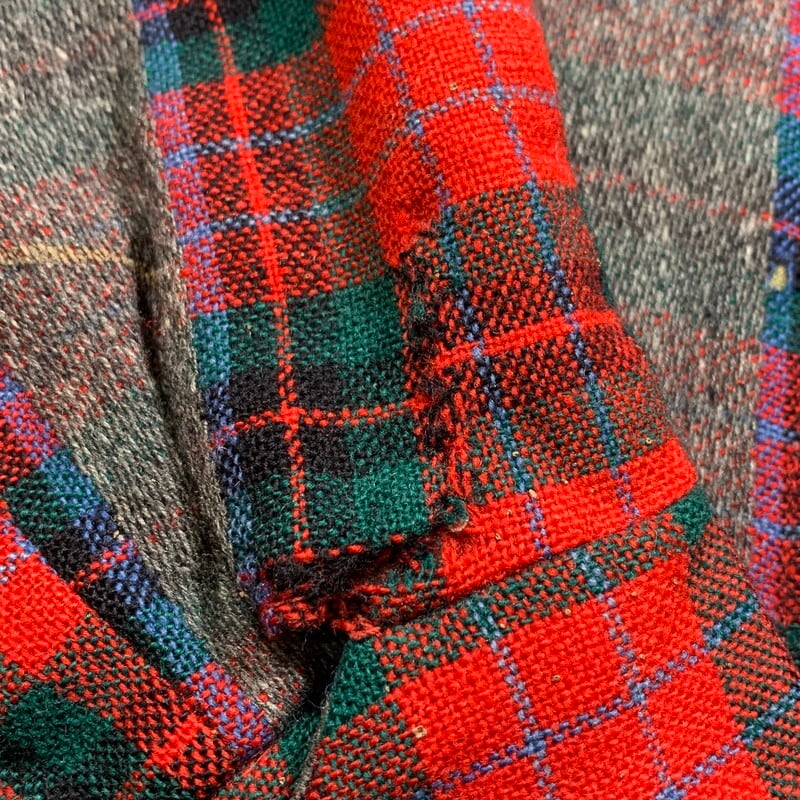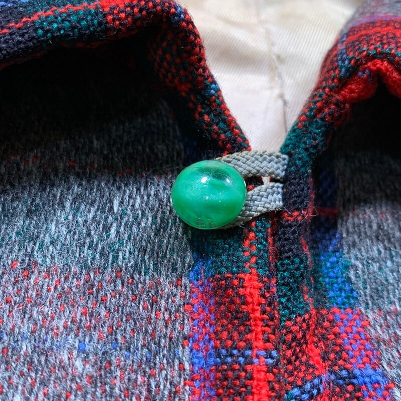 40年代から50年代頃のLakelandイタリアンカラーウールショートジャケットです。ヴィンテージウェアではウールコートやファラオジャケット等で有名なブランドです。ご紹介するこちらは、チェックとグレーの2トーン仕様(グレー部分はチェックの上からグレーのウール素材で編まれたデザイン)で、オープンイタリアンカラーが特徴的な1着です。ジッパーにはGRIPPERが使用されています。首元のボタンは縫い直されており、オリジナルでは無いですが、古い年代の物が付いています。袖口のボタンはオリジナルで揃っています。ライニングにシミやダメージが見られますが、ハンドステッチでリペアを施しています。ボディには小さな虫食いがいくつかあり、袖口に擦り切れと、右袖口にハンドリペアがございます。サイズは40。ショートの丈感でロカビリーファッションはもちろんですが、インナーとのレイヤードも楽しめるアイテムです。珍しい個体ですので、お好きな方は是非この機会にいかがでしょうか。