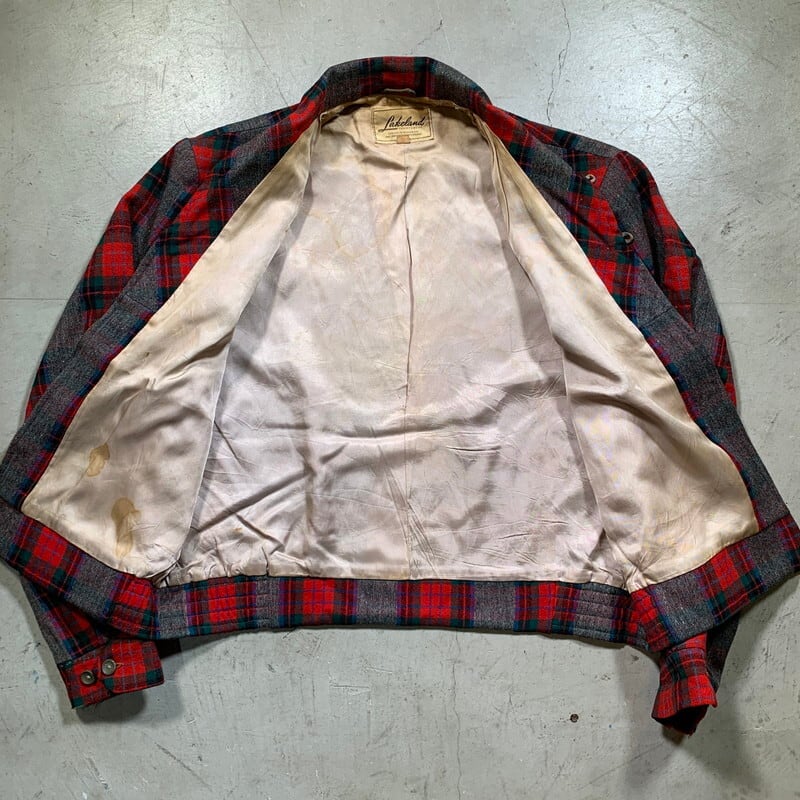 40's 50's Lakeland SPORTSWEAR イタリアンカラーウールショートジャケット チェック スウィングトップ ロカビリー 筆記体 GRIPPER サイズ40 希少 ヴィンテージ BA-1565 RM1984H