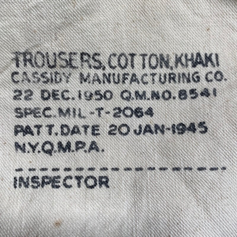 50's U.S.ARMY 45KHAKI チノトラウザーズ MIL-T-2064 CASSIDY MFG サイドダブルステッチ 尿素ボタン ミリタリー 実寸W32~33 希少 ヴィンテージ BA-1579 RM1998H