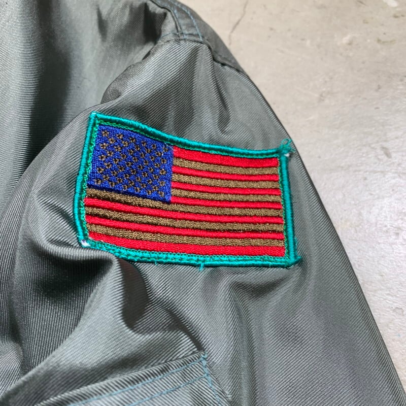 80年代のUSAF CWU-45/Pフライトジャケットです。難燃繊維が織り込まれたノーメックスを使用したアイテムです。フロントは大きいGRIPPERジッパー採用右腕には第302特殊作戦飛行隊、左腕には星条旗、右胸には軍事空輸軍団のワッペンが付きます。ライトアウターですので、3シーズン着用可能です。こちらは使用感も少なく非常にコンディションの良い個体です。サイズはLARGE。AIPHA社製の民間モデルですが、ここまで状態の良い物はなかなか希少だと思います。お探しだった方は是非この機会にいかがでしょうか。