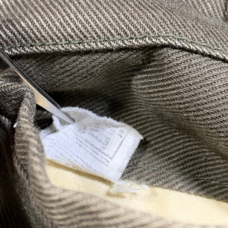 70's頃のLee FRISKO JEENSワークパンツです。1948年に買収したハイマン社のワークウェアブランドのCAN'S BUST'EM (キャントバステム)の商品であったフリスコジーンズをLee製品として引継ぎ製造したモデルです。当時港湾関係の労働者に非常に人気があったとされています。セミオートマチックのTALONジッパー採用。キャントバステムを意識したスナップボタン、L字フロントポケットなどが特徴です。右バックポケット内側にユニオンチケットもございます。®MRの表記有り。センタープレス跡や細かな擦れ等はございますが目立つ汚れやダメージは特に無く状態は良好です。ウエストはW34インチ位でゴールデンサイズです。フリスコも年々見つかりづらくなってきていますので、サイズが合う方は是非どうぞ。