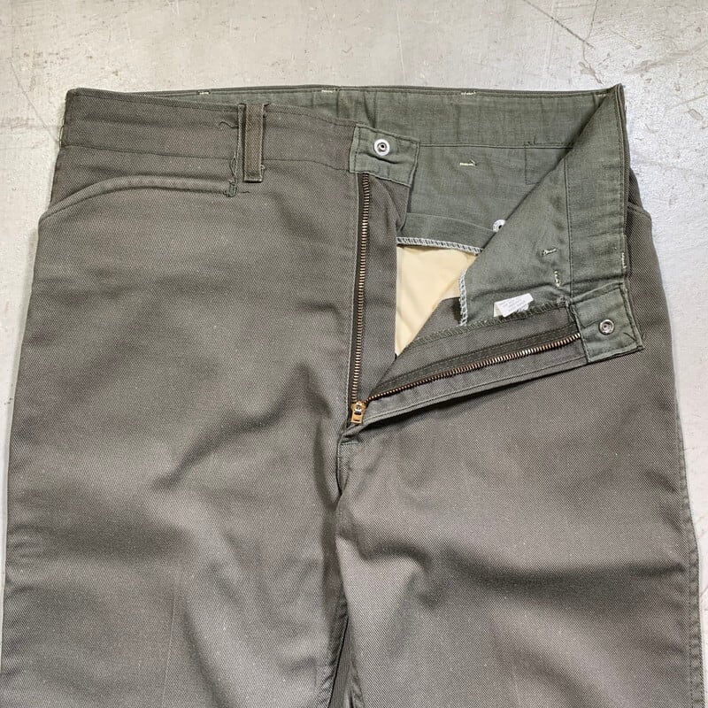 ~70's Lee FRISKO JEENS リー フリスコジーンズ ワークパンツ カーキ TALONセミオートマチック CAN'T BUST’EM コットンツイル W34位 USA製 希少 ヴィンテージ BA-1597 RM2016H