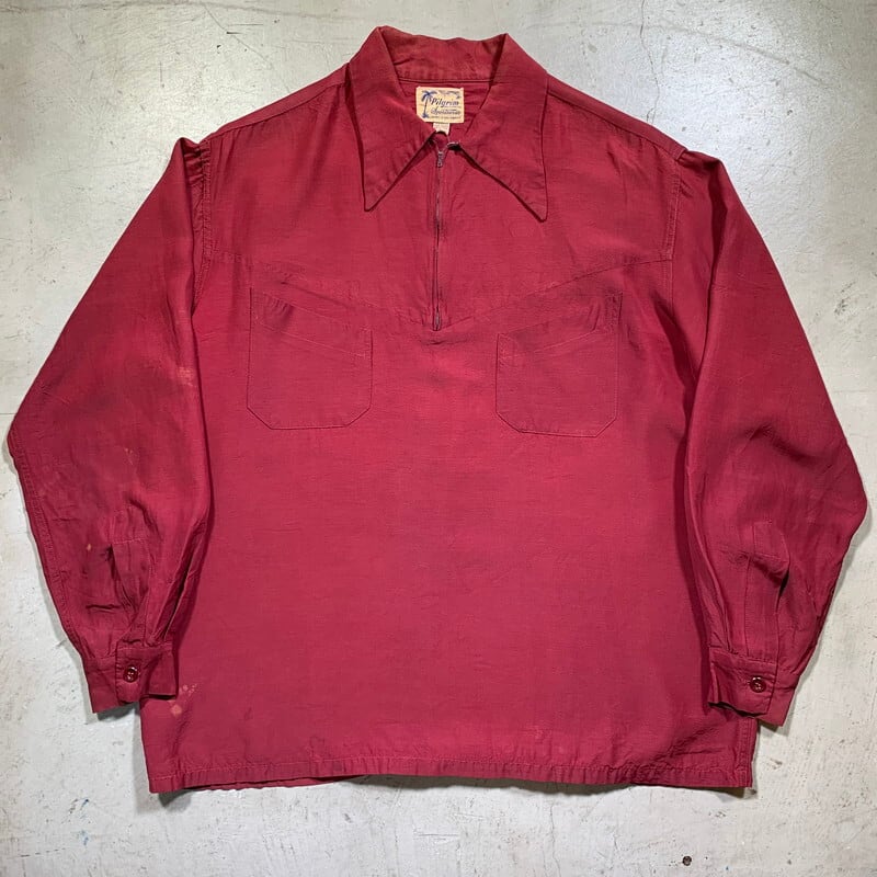 40's~ 50's Pilgrim ピルグリム レーヨンプルオーバーシャツ ハーフジップ Sears ストアブランド REG表記 ワインレッド ロングポイント Lサイズ 希少 ヴィンテージ BA-1598 RM2017H