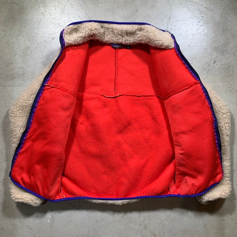 SPECIAL!! 80's patagonia パタゴニア 23011 F8 レトロパイルカーディガン 最初期 初代 1988年 ナチュラル パープル 三角タグ USA製 Mサイズ レア 希少 ヴィンテージ BA-1615 RM2034H